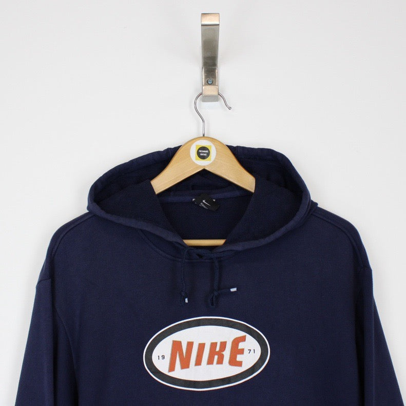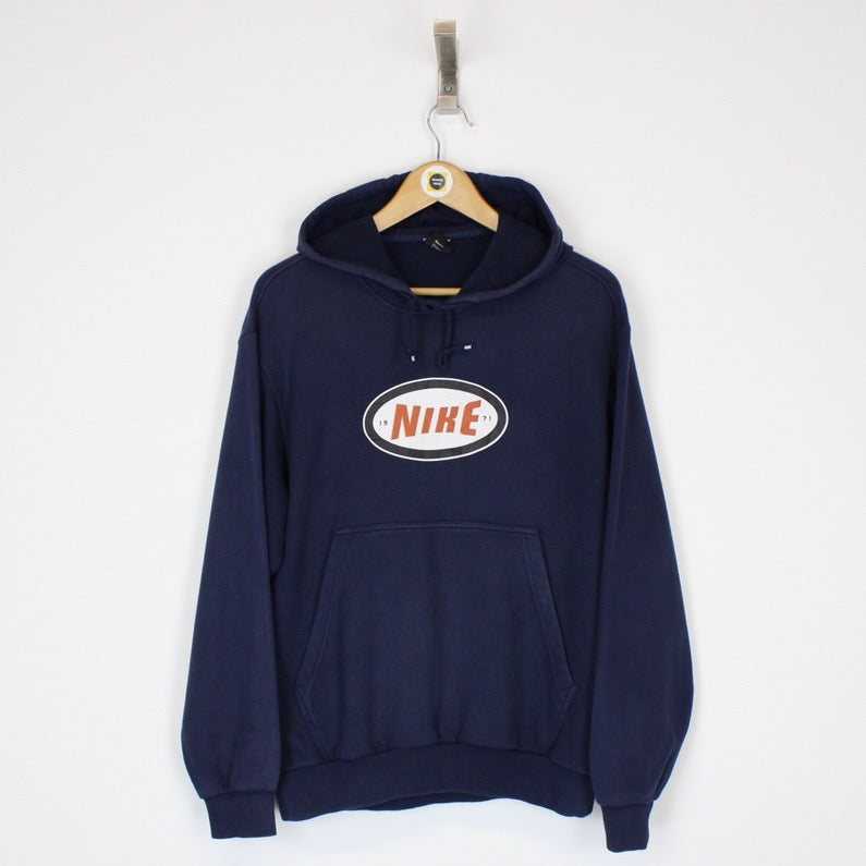 Vintage 00's Nike Navy Blue Pullover Spellout Hoodie Jumper Size on label: Medium Our recommended size: Small Pit to pit (inches): 22 Length (inches): 24.5 All products listed are vintage unless stated otherwise in the description. These items are pre-loved and pre-worn, resulting in small signs of wear and minor fading. We think this adds to their unique authenticity, but if an item has any major flaws these will be stated below. Please contact us if you have any further questions!