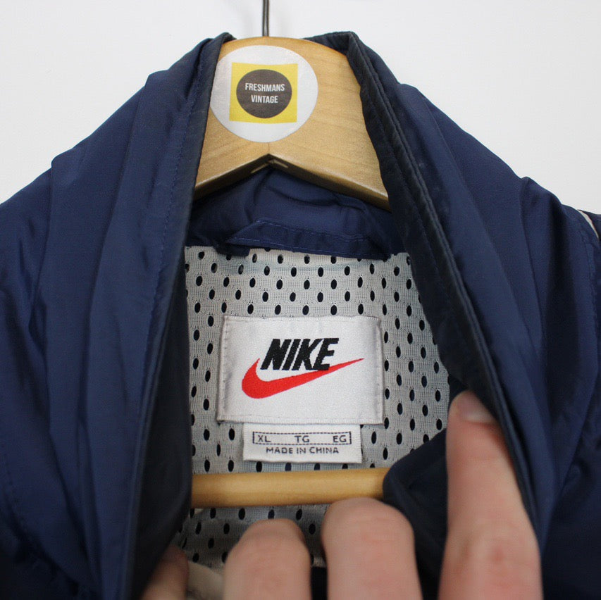 Vintage 90's Nike Navy Blue Pullover 1/4 Zip Waterproof Spellout Jacket Size on label: XL Our recommended size: XL Pit to pit (inches): 25.5 Length (inches): 28.5 All products listed are vintage unless stated otherwise in the description. These items are pre-loved and pre-worn, resulting in small signs of wear and sometimes minor flaws. We think this adds to their unique authenticity, but if an item has any bigger flaws these will be stated Please contact us if you have any further questions!