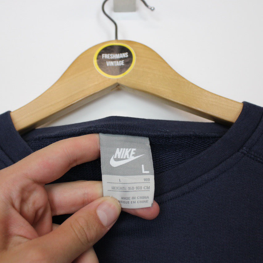 Vintage 00's Nike Navy Blue Central Swoosh Crew Neck Sweatshirt Jumper Size on label: Large Our recommended size: Small Pit to pit (inches): 20 Length (inches): 27 All products listed are vintage unless stated otherwise in the description. These items are pre-loved and pre-worn, resulting in small signs of wear and sometimes minor flaws. We think this adds to their unique authenticity, but if an item has any bigger flaws these will be stated. Please contact us if you have any further questions!