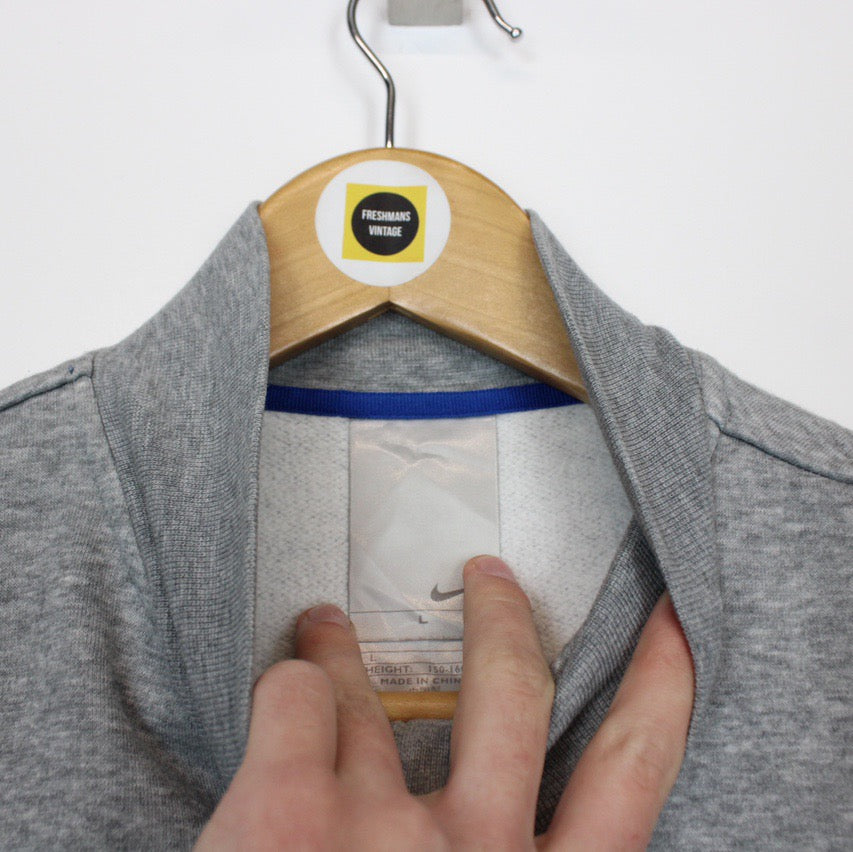 Vintage 00's Nike Grey Pullover 1/4 Zip Spellout Sweatshirt Jumper Size on label: Large Our recommended size: Small Pit to pit (inches): 20.5 Length (inches): 26 All products listed are vintage unless stated otherwise in the description. These items are pre-loved and pre-worn, resulting in small signs of wear and minor fading. We think this adds to their unique authenticity, but if an item has any major flaws these will be stated below. - The sweatshirt has a mark to the back, this is reflected in the price Please contact us if you have any further questions!