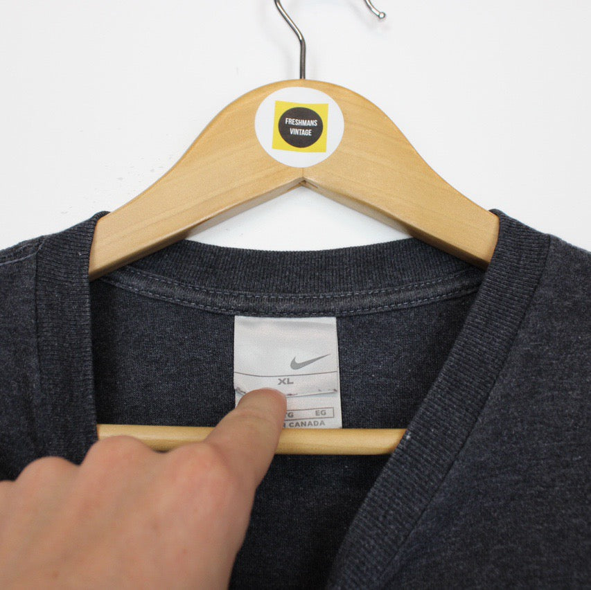 Vintage 00's Nike Dark Grey Crew Neck Short Sleeve Spellout T-Shirt Size on label: XL Our recommended size: XL Pit to pit (inches): 23 Length (inches): 28 All products listed are vintage unless stated otherwise in the description. These items are pre-loved and pre-worn, resulting in small signs of wear and fading. We think this adds to their unique authenticity, but if an item has any major flaws these will be stated. Please contact us if you have any further questions!