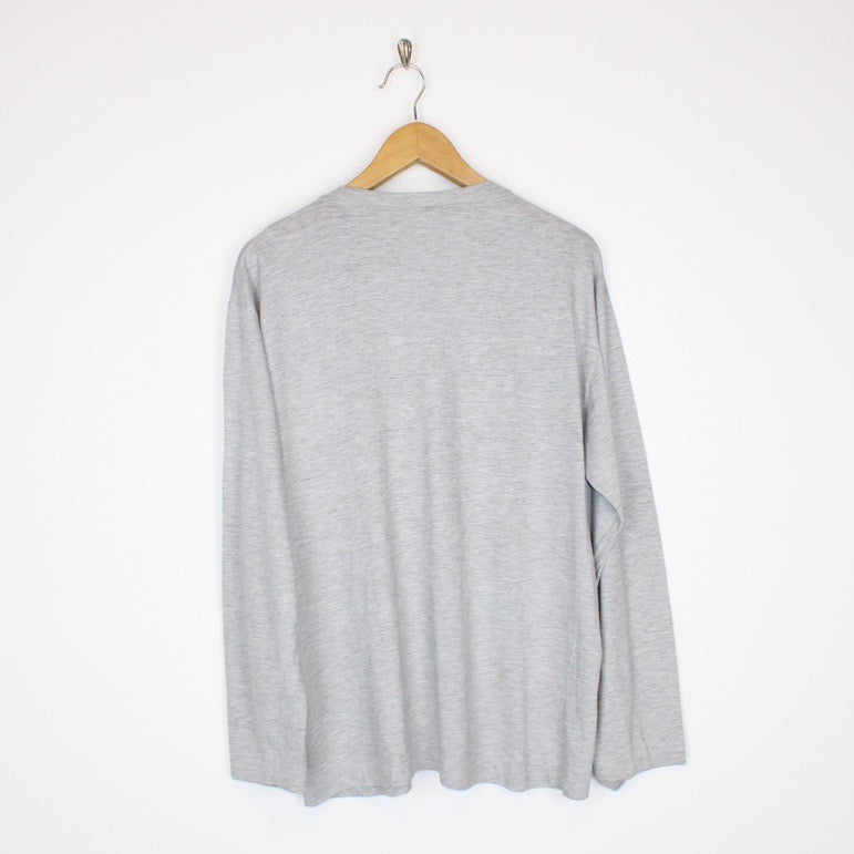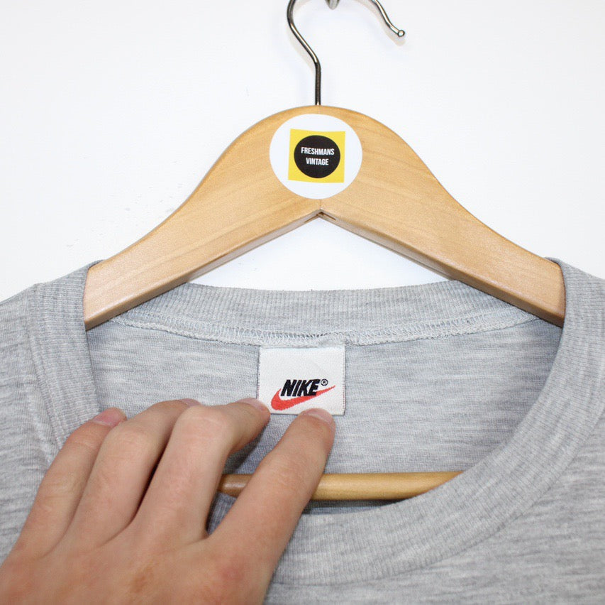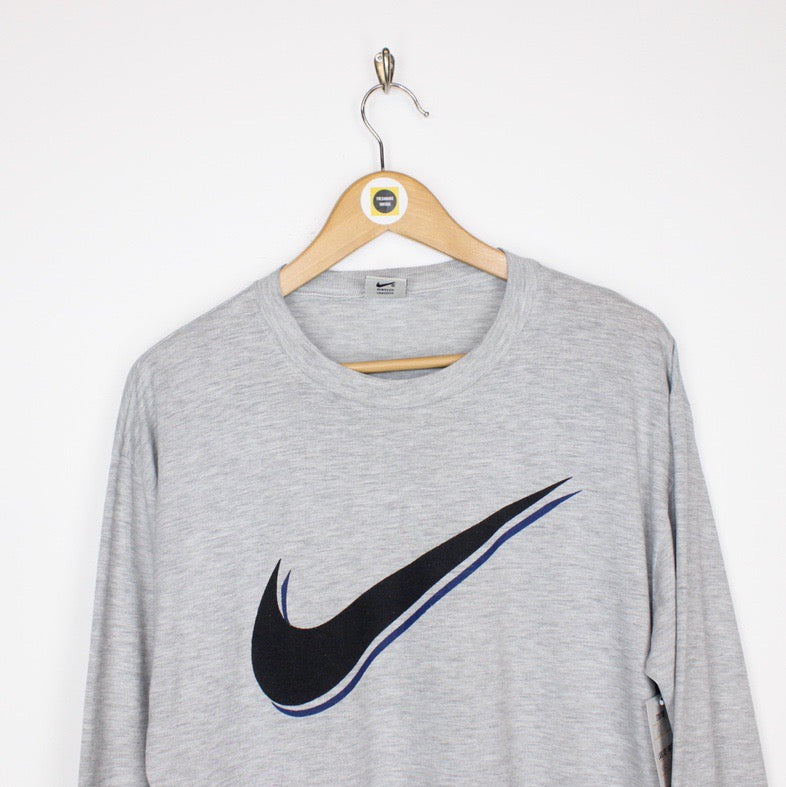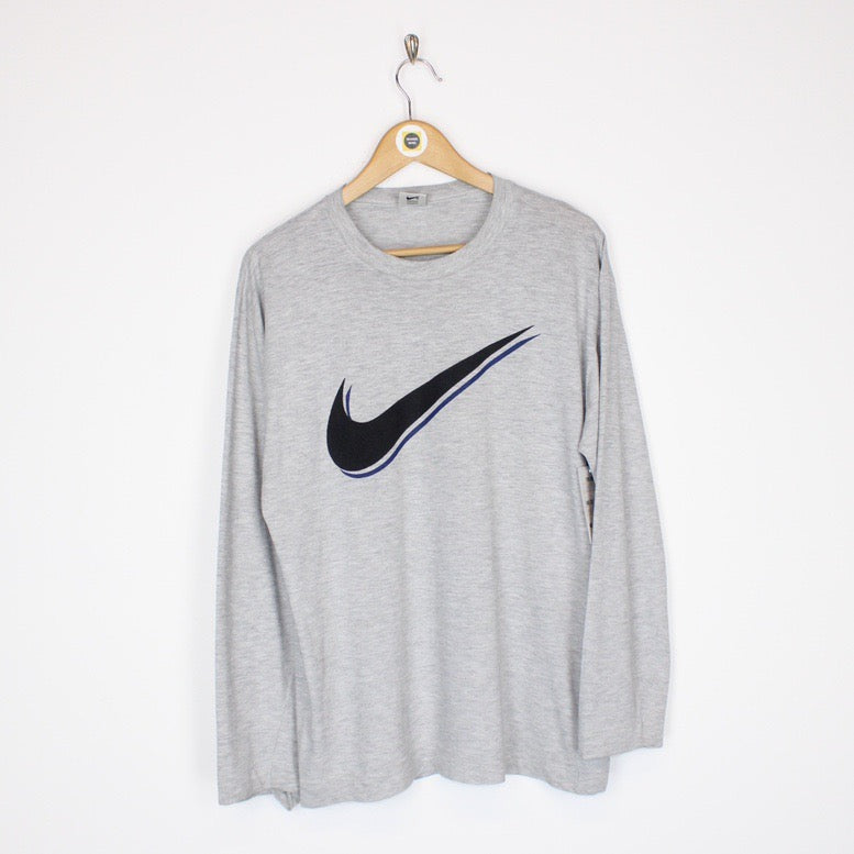 Vintage 90's Nike Grey and Black Crew Neck Long Sleeve Swoosh T-Shirt Size on label: N/A Our recommended size: XL Pit to pit (inches): 22 Length (inches): 28.5 All products listed are vintage unless stated otherwise in the description. These items are pre-loved and pre-worn, resulting in small signs of wear and fading. We think this adds to their unique authenticity, but if an item has any major flaws these will be stated. Please contact us if you have any further questions!