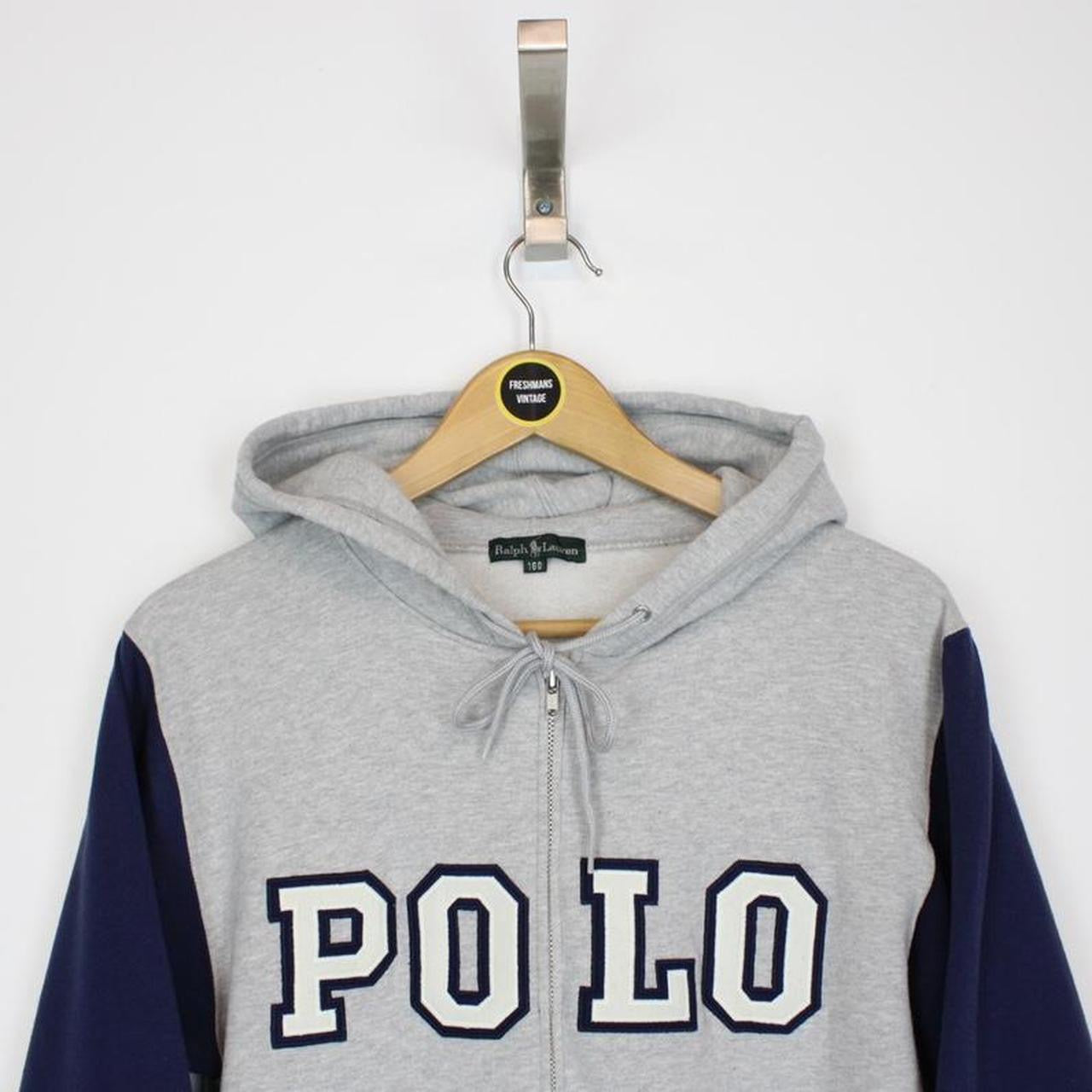 Vintage 90s Polo Ralph Lauren Joe Pesci Grey and Navy Blue Full Zip Spellout Hoodie Jumper Size on label: 160 Our recommended size: XS Pit to pit (inches): 19 Length (inches): 24.5 All products listed are vintage unless stated otherwise in the description. These items are pre-loved and pre-worn, resulting in small signs of wear and fading. We think this adds to their unique authenticity, but if an item has any major flaws these will be stated. Please contact us if you have any further questions!