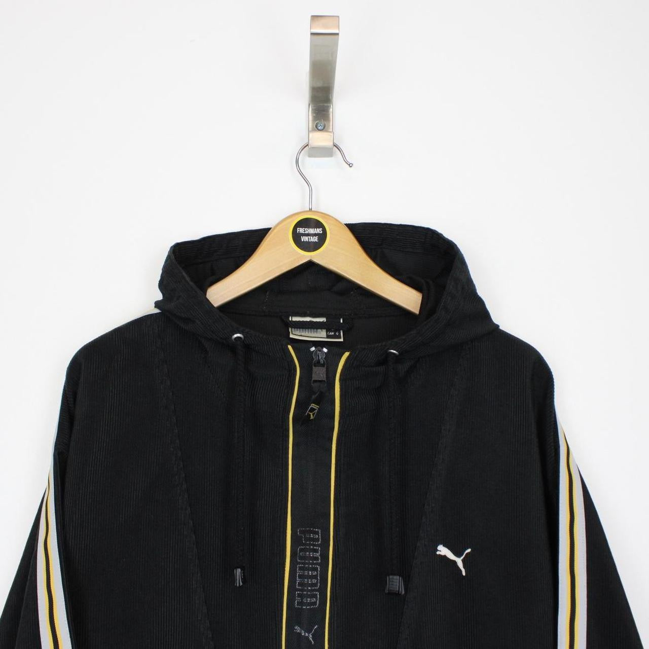 Vintage 90s Puma Black and Yellow Full Zip Spellout Corduroy Jacket