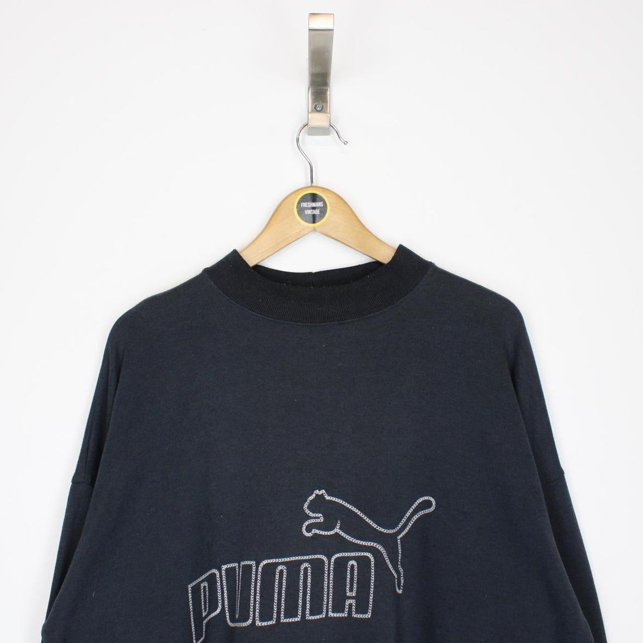 Vintage 90s Puma Black and Grey Spellout Sweatshirt Jumper