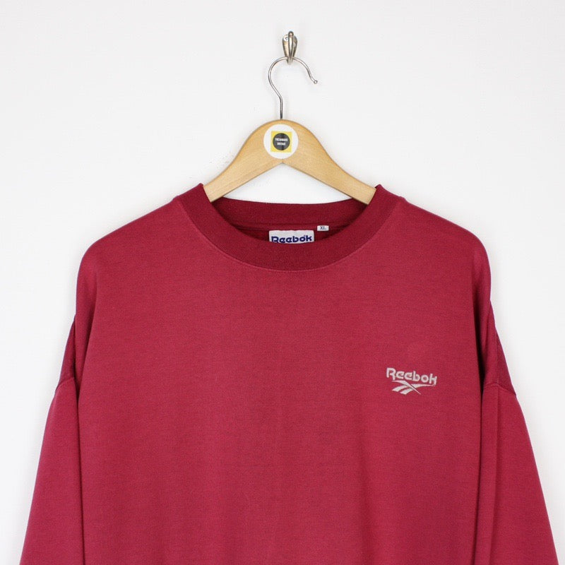 Vintage 90's Reebok Burgundy Crew Neck Spellout Sweatshirt Jumper Size on label: XL Our recommended size: XL Pit to pit (inches): 27.5 Length (inches): 26.5 All products listed are vintage unless stated otherwise in the description. These items are pre-loved and pre-worn, resulting in small signs of wear and sometimes minor flaws. We think this adds to their unique authenticity, but if an item has any bigger flaws these will be stated - The sweatshirt does have some marking to the right sleeve, this is reflected in the price Please contact us if you have any further questions!