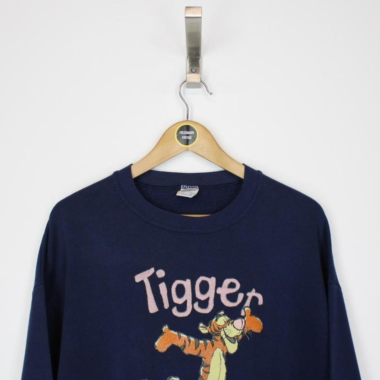 Vintage 90s Tigger Disney Navy Blue Crew Neck Spellout Sweatshirt Jumper Size on label: Large Our recommended size: Large Pit to pit (inches): 23.5 Length (inches): 26 All products listed are vintage unless stated otherwise in the description. These items are pre-loved and pre-worn, resulting in small signs of wear and sometimes minor flaws. We think this adds to their unique authenticity, but if an item has any bigger flaws these will be stated. Please contact us if you have any further questions!