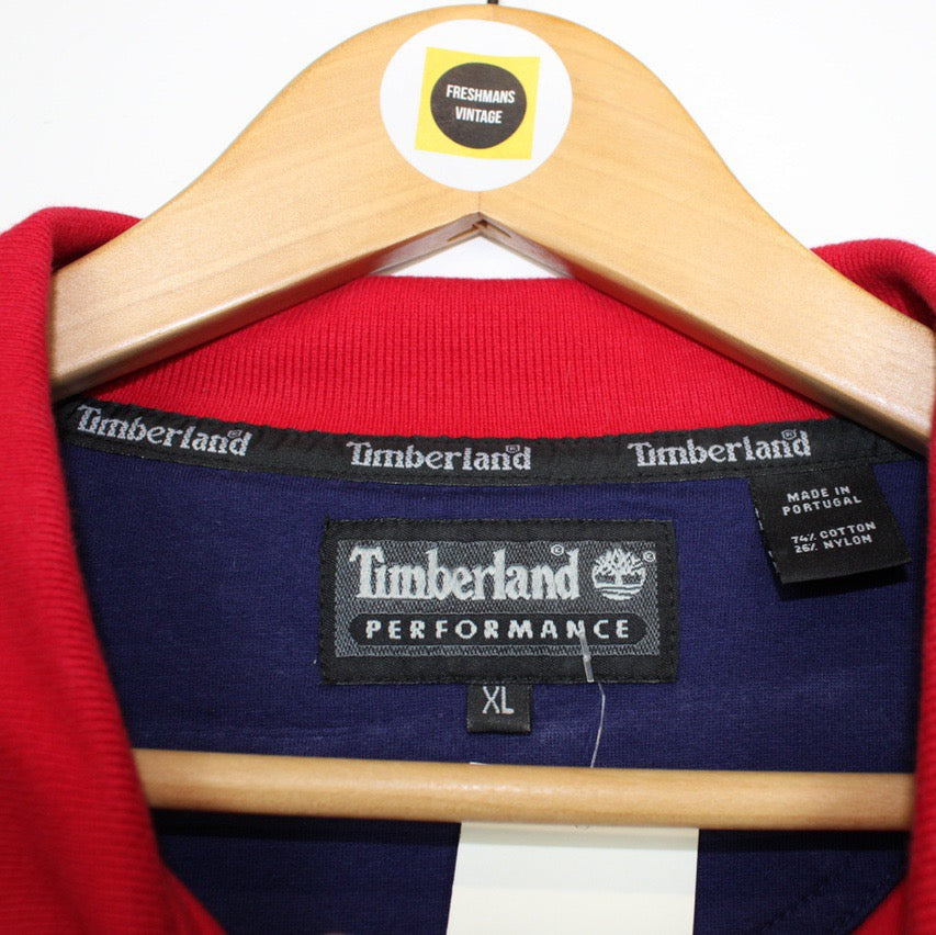 Vintage 90's Timberland Red and Navy Blue Pullover 1/4 Zip Sweatshirt Jumper Size on label: XL Our recommended size: XL Pit to pit (inches): 24 Length (inches): 28 All products listed are vintage unless stated otherwise in the description. These items are pre-loved and pre-worn, resulting in small signs of wear and minor fading. We think this adds to their unique authenticity, but if an item has any major flaws these will be stated below. Please contact us if you have any further questions!