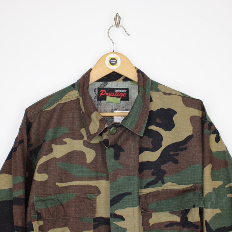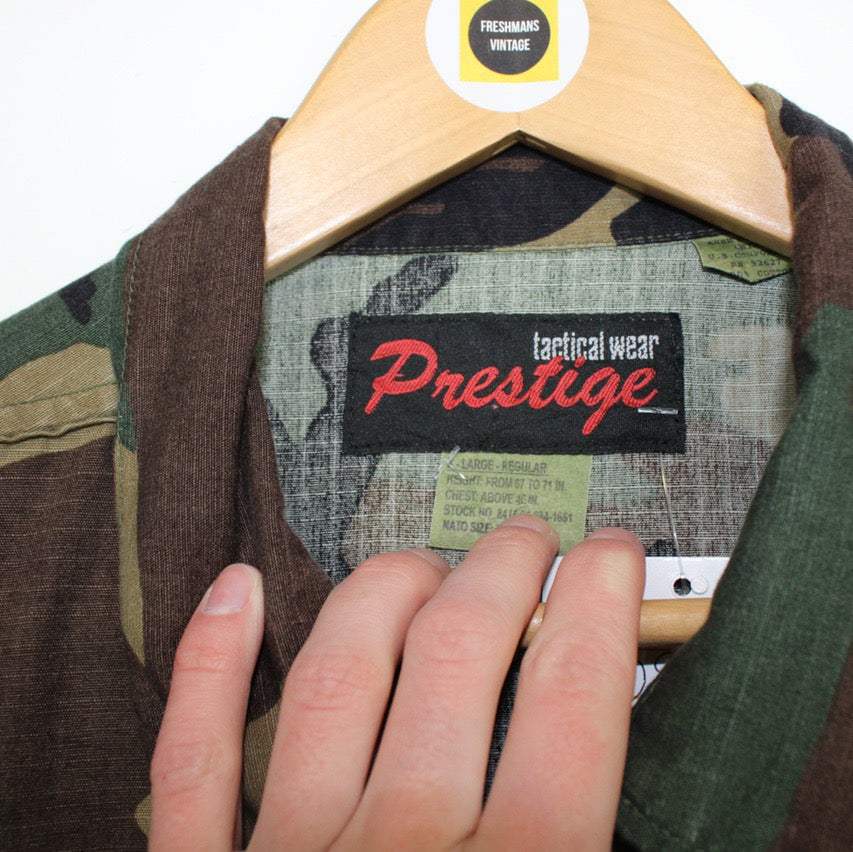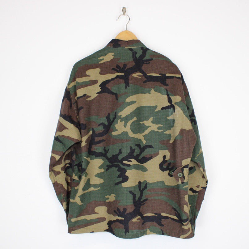 Vintage 90's USA Army Issue Military Woodland Camo Multi Pocket Overshirt Jacket Size on label: XL Our recommended size: XL Pit to pit (inches): 26 Length (inches): 30.5 All products listed are vintage unless stated otherwise in the description. These items are pre-loved and pre-worn, resulting in small signs of wear and fading. We think this adds to their unique authenticity, but if an item has any major flaws these will be stated. Please contact us if you have any further questions!