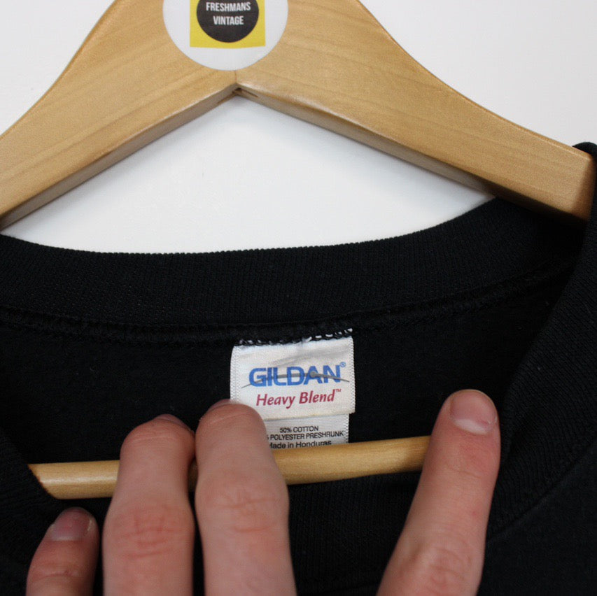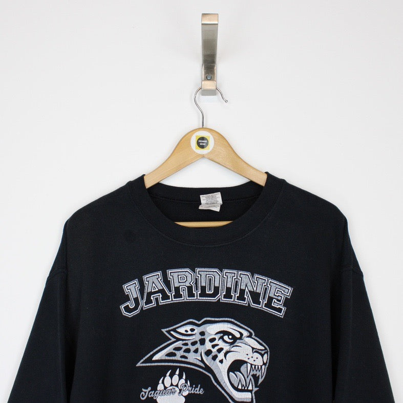 Vintage 90's Jardine Jaguars USA Black Crew Neck Spellout Sweatshirt Jumper Size on label: Medium Our recommended size: Small Pit to pit (inches): 22 Length (inches): 25 All products listed are vintage unless stated otherwise in the description. These items are pre-loved and pre-worn, resulting in small signs of wear and minor fading. We think this adds to their unique authenticity - The sweatshirt has a light mark to the right shoulder, this is reflected in the price Please contact us if you have any further questions!