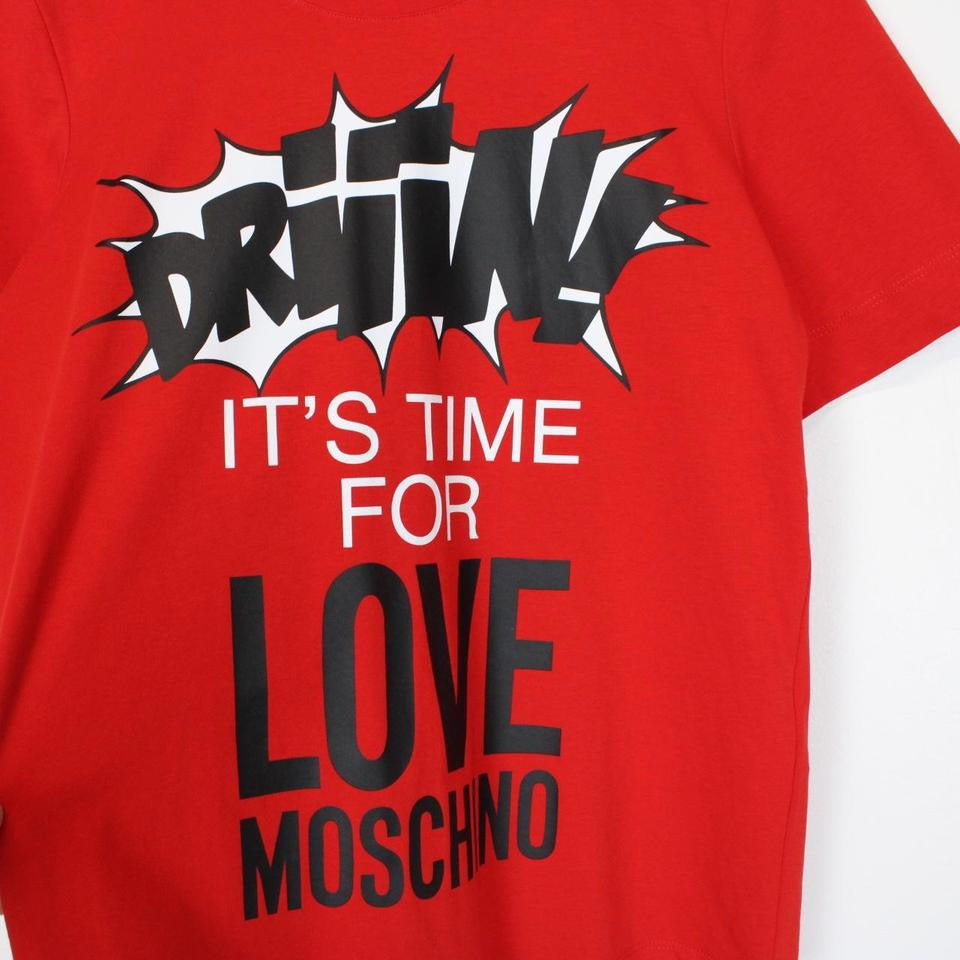 Love Moschino Red, White and Black Spellout Short Sleeve T-Shirt