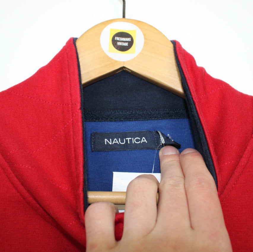 Vintage 90's Nautica Red, White and Navy Blue Striped Pullover 1/4 Zip Sweatshirt Jumper Size on label: XL Our recommended size: XL Pit to pit (inches): 25 Length (inches): 28 All products listed are vintage unless stated otherwise in the description. These items are pre-loved and pre-worn, resulting in small signs of wear and sometimes minor flaws. We think this adds to their unique authenticity, but if an item has any bigger flaws these will be stated. - The only flaw with the jumper is that the white section has turned slightly pink due to the red section running in the wash Please contact us if you have any further questions!