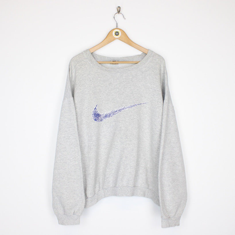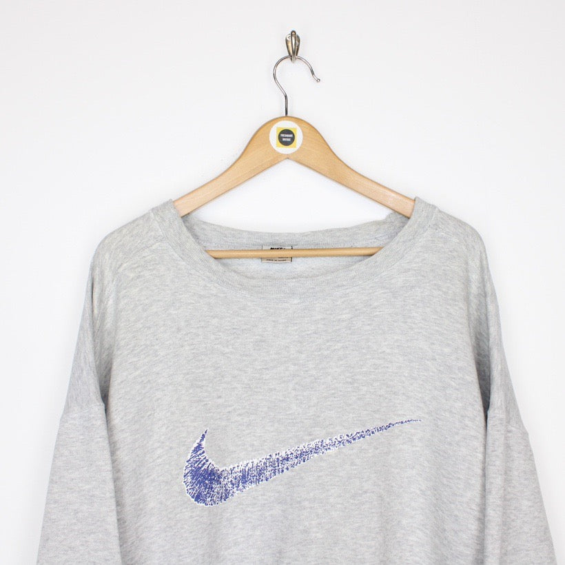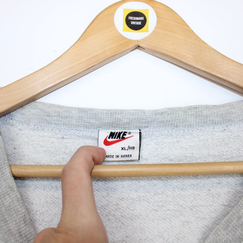 Vintage 90's Nike Grey Crew Neck Central Swoosh Sweatshirt Jumper Size on label: Women's XL Our recommended size: Women's XL Pit to pit (inches): 27 Length (inches): 26 All products listed are vintage unless stated otherwise in the description. These items are pre-loved and pre-worn, resulting in small signs of wear and minor fading. We think this adds to their unique authenticity, but if an item has any major flaws these will be stated below. Please contact us if you have any further questions!