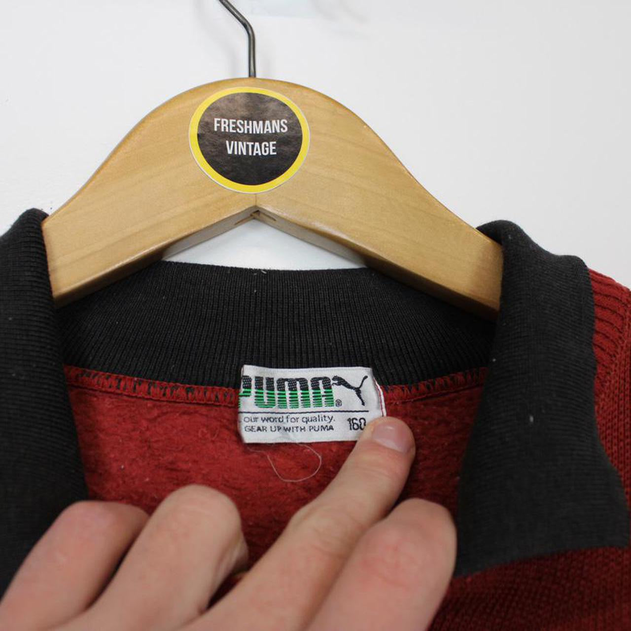 Vintage 90's Puma Burgundy Pullover Spellout Sweatshirt Jumper Size on label: 160 Our recommended size: UK 4 Pit to pit (inches): 21 Length (inches): 20 All products listed are vintage unless stated otherwise in the description. These items are pre-loved and pre-worn, resulting in small signs of wear and minor fading. We think this adds to their unique authenticity, but if an item has any major flaws these will be stated below. Please contact us if you have any further questions!