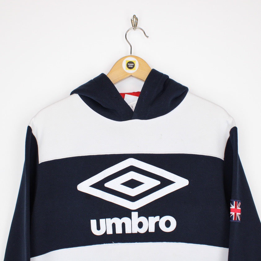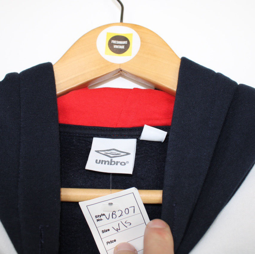 Vintage 00's Umbro Navy Blue and White Spellout Pullover Hoodie Jumper Size on label: Women's Small Our recommended size: Women's Small Pit to pit (inches): 22 Length (inches): 24 All products listed are vintage unless stated otherwise in the description. These items are pre-loved and pre-worn, resulting in small signs of wear and sometimes minor flaws. We think this adds to their unique authenticity, but if an item has any bigger flaws these will be stated. Please contact us if you have any further questions!