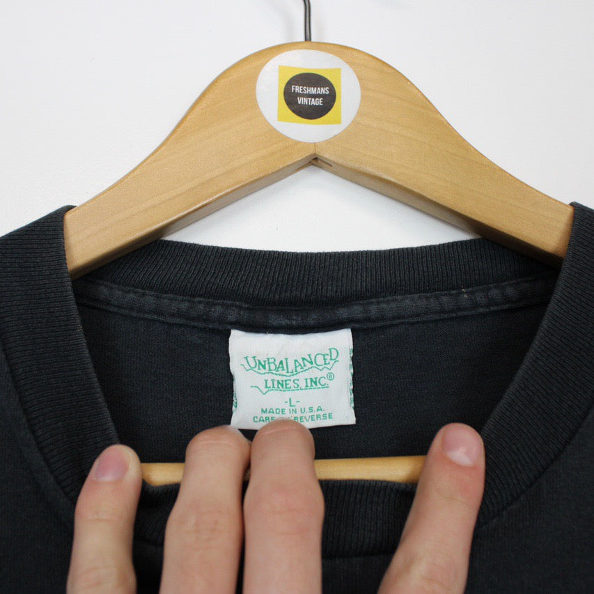 Vintage 1991 Las Vegas Raiders NFL Black USA Short Sleeve Spellout T-Shirt Size on label: Large Our recommended size: M/L Pit to pit (inches): 20.5 Length (inches): 27 All products listed are vintage unless stated otherwise in the description. These items are pre-loved and pre-worn, resulting in small signs of wear and sometimes minor flaws. We think this adds to their unique authenticity, but if an item has any bigger flaws these will be stated. Please contact us if you have any further questions!