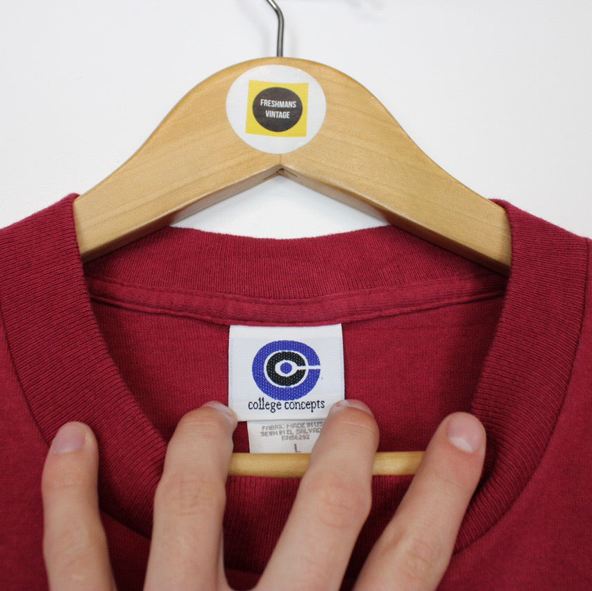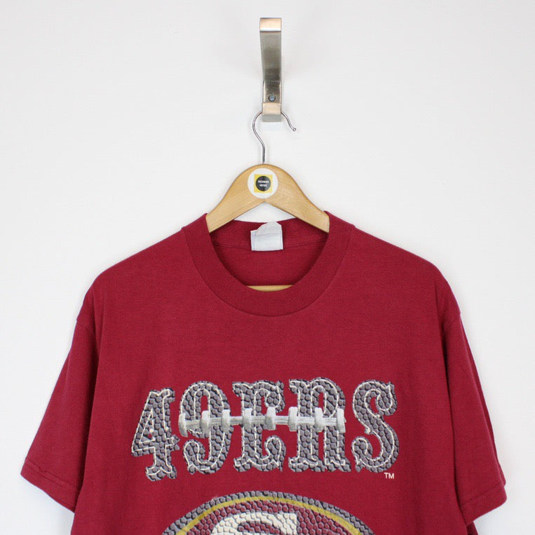 Vintage 1996 San Francisco 49ers NFL Burgundy USA Short Sleeve Spellout T-Shirt Size on label: Large Our recommended size: Large Pit to pit (inches): 20 Length (inches): 29.5 All products listed are vintage unless stated otherwise in the description. These items are pre-loved and pre-worn, resulting in small signs of wear and sometimes minor flaws. We think this adds to their unique authenticity, but if an item has any bigger flaws these will be stated. Please contact us if you have any further questions!