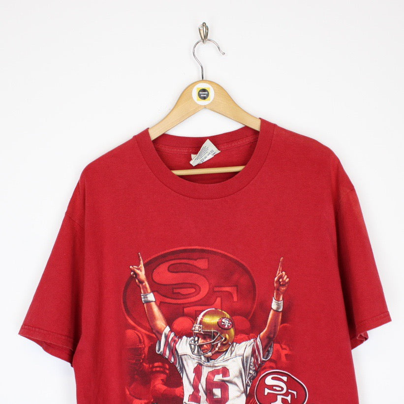 Vintage 90's Lee San Francisco 49ers NFL Red USA Short Sleeve Spellout T-Shirt Size on label: Large Our recommended size: Large Pit to pit (inches): 22 Length (inches): 30.5 All products listed are vintage unless stated otherwise in the description. These items are pre-loved and pre-worn, resulting in small signs of wear and sometimes minor flaws. We think this adds to their unique authenticity, but if an item has any bigger flaws these will be stated. - The tee does have some marking to the back Please contact us if you have any further questions!