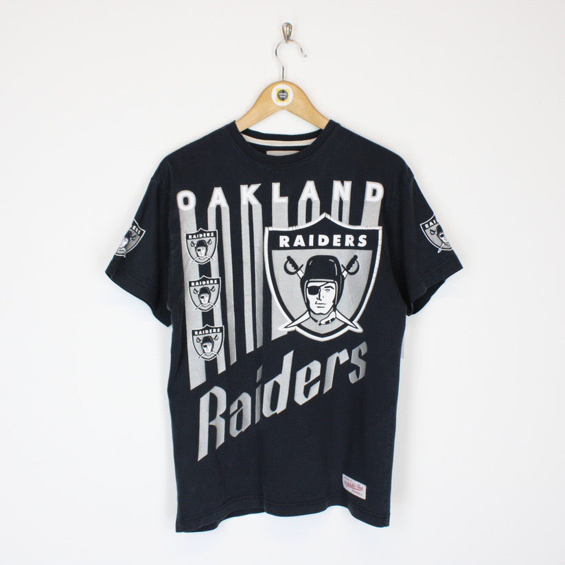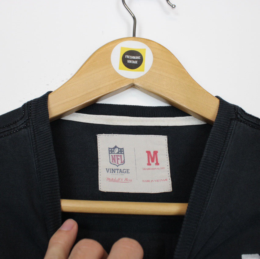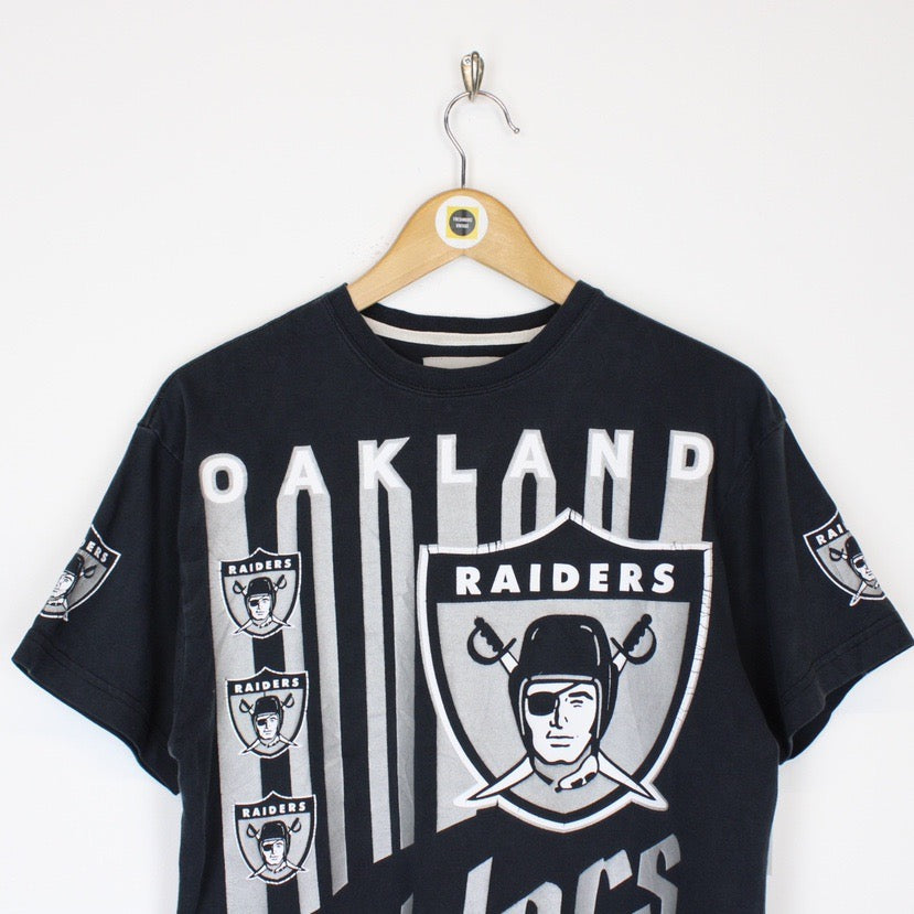 Vintage 90's Las Vegas Raiders NFL Black and Grey USA Short Sleeve Spellout T-Shirt Size on label: Medium Our recommended size: Medium Pit to pit (inches): 19.5 Length (inches): 27.5 All products listed are vintage unless stated otherwise in the description. These items are pre-loved and pre-worn, resulting in small signs of wear and sometimes minor flaws. We think this adds to their unique authenticity, but if an item has any bigger flaws these will be stated. Please contact us if you have any further questions!