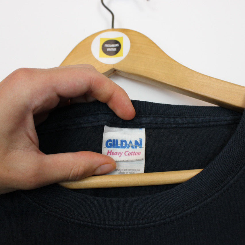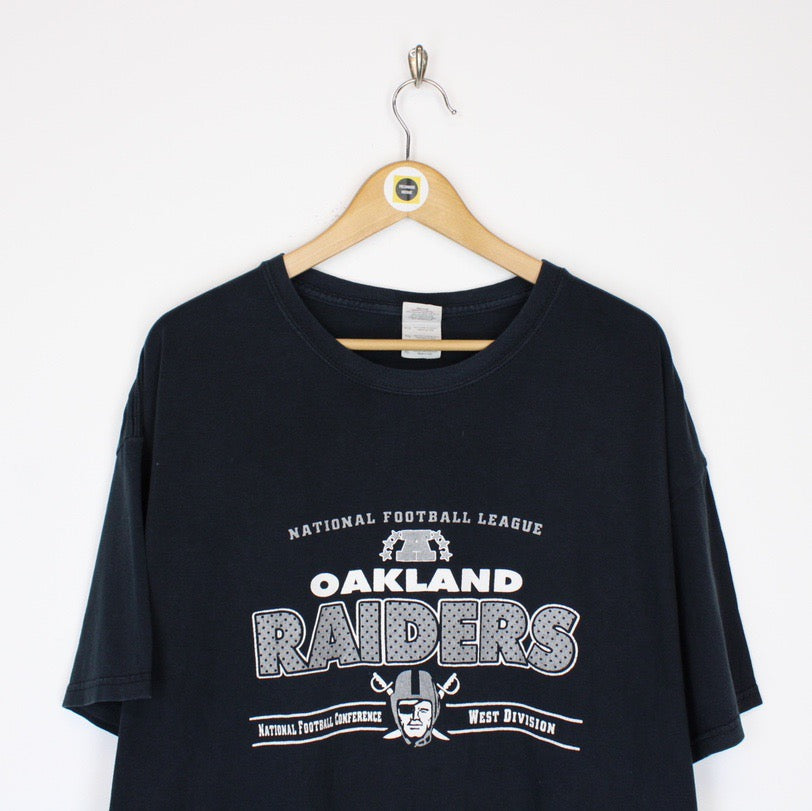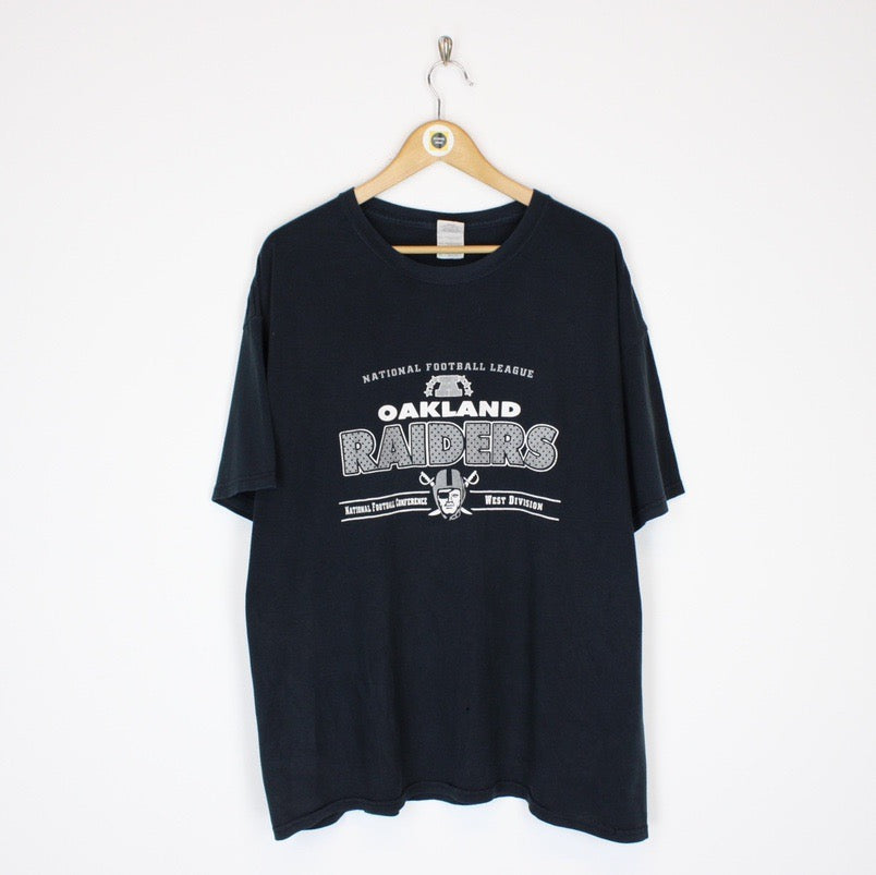 Vintage 90's Las Vegas Raiders NFL Black USA Short Sleeve Spellout T-Shirt Size on label: XL Our recommended size: XL Pit to pit (inches): 25.5 Length (inches): 29.5 All products listed are vintage unless stated otherwise in the description. These items are pre-loved and pre-worn, resulting in small signs of wear and sometimes minor flaws. We think this adds to their unique authenticity, but if an item has any bigger flaws these will be stated. - The t-shirt does have a hole to the front, this is reflected in the price Please contact us if you have any further questions!