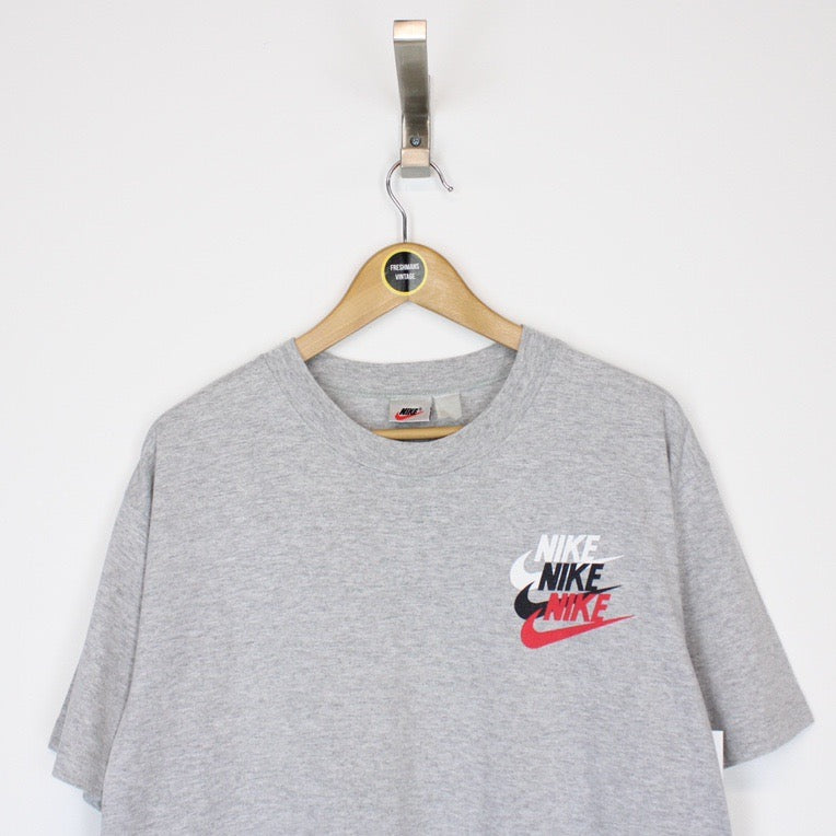Vintage 90's Nike Grey Short Sleeve Spellout T-Shirt Size on label: N/A Our recommended size: Medium Pit to pit (inches): 21 Length (inches): 26 All products listed are vintage unless stated otherwise in the description. These items are pre-loved and pre-worn, resulting in small signs of wear and fading. We think this adds to their unique authenticity, but if an item has any major flaws these will be stated. Please contact us if you have any further questions!