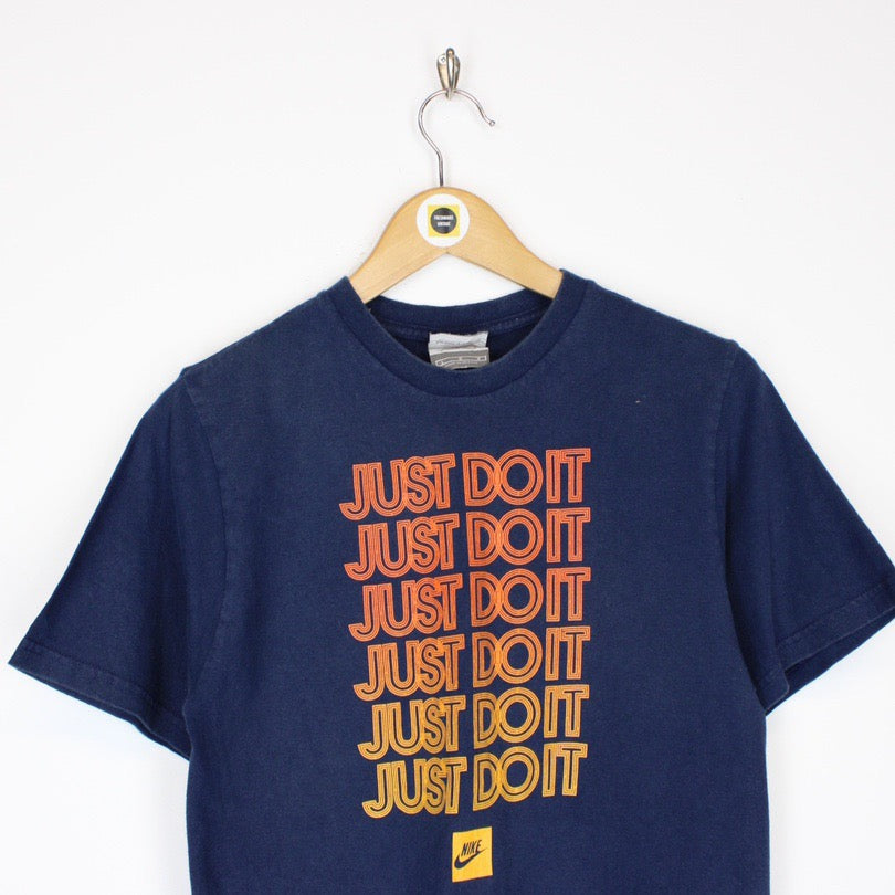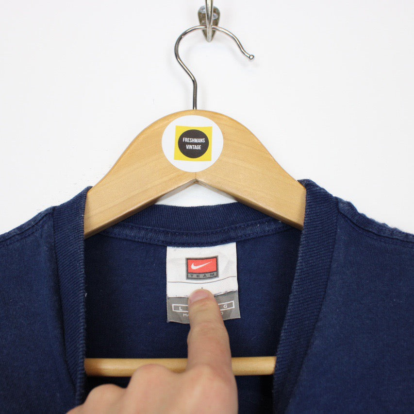 Vintage 90's Nike Navy Blue and Orange Crew Neck Short Sleeve Spellout T-Shirt Size on label: Large Our recommended size: Small Pit to pit (inches): 18.5 Length (inches): 27.5 All products listed are vintage unless stated otherwise in the description. These items are pre-loved and pre-worn, resulting in small signs of wear and fading. We think this adds to their unique authenticity, but if an item has any major flaws these will be stated. Please contact us if you have any further questions!