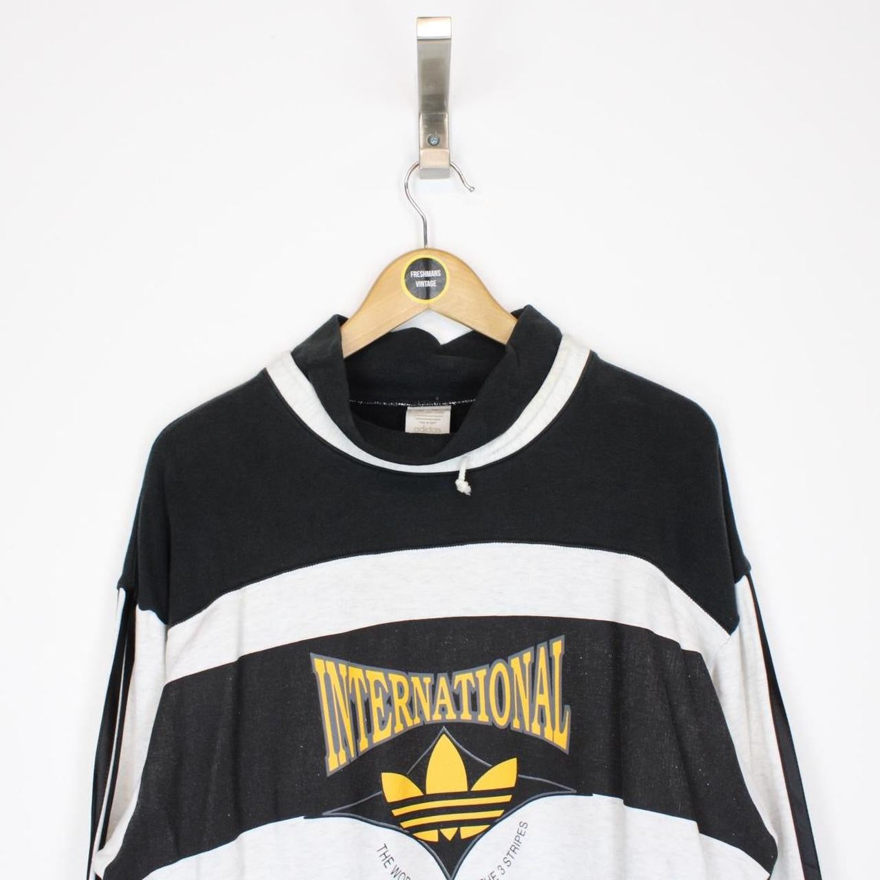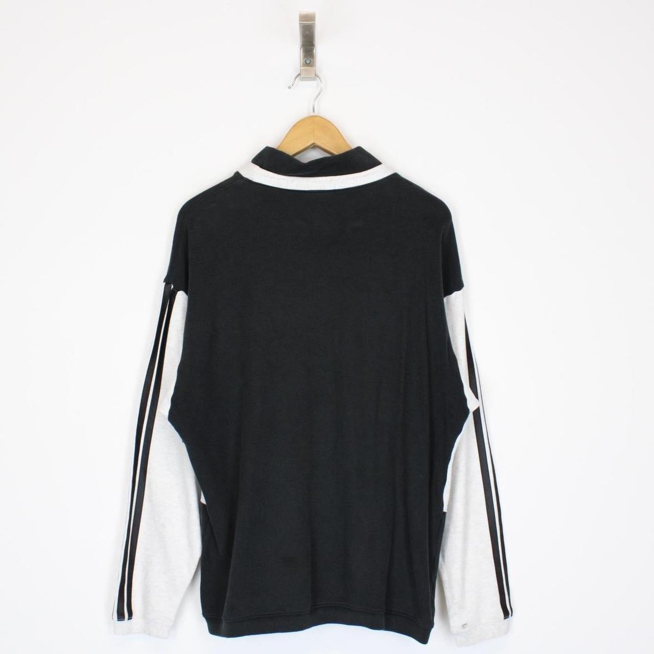Vintage 80s Adidas Black and Grey Mock Neck Spellout Sweatshirt Jumper