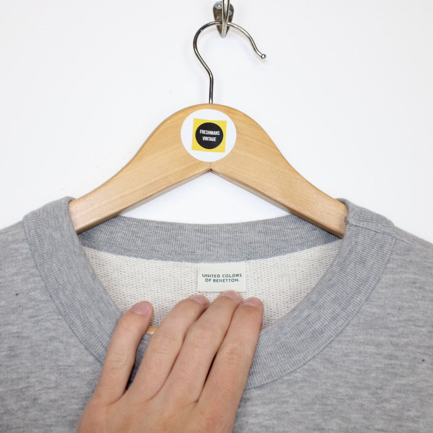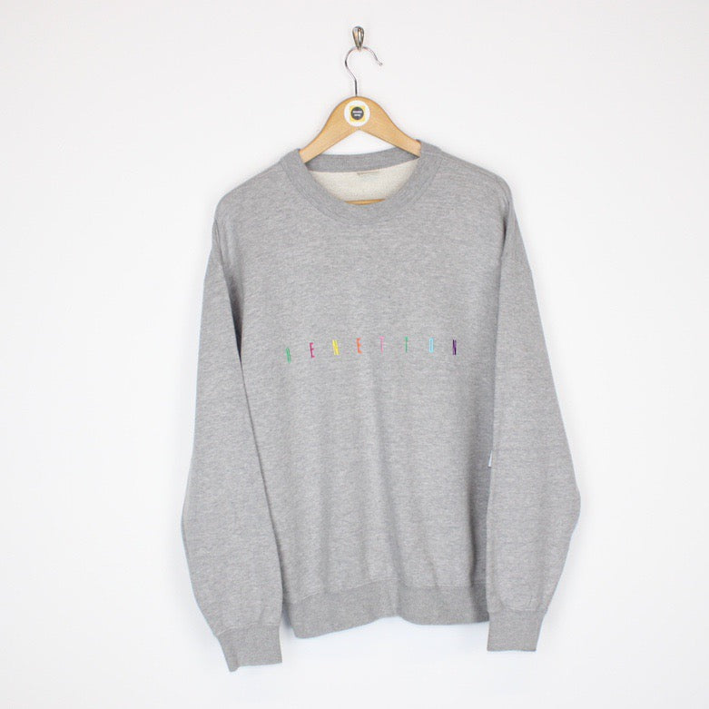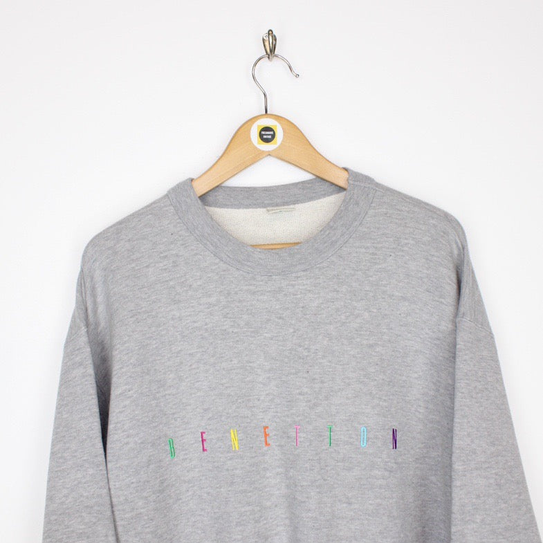 Vintage 90's United Colours of Benetton Grey and Multicoloured Spellout Sweatshirt Jumper Size on label: Small Our recommended size: Small Pit to pit (inches): 23 Length (inches): 26.5 All products listed are vintage unless stated otherwise in the description. These items are pre-loved and pre-worn, resulting in small signs of wear and minor fading. We think this adds to their unique authenticity, but if an item has any major flaws these will be stated below. Please contact us if you have any further questions!