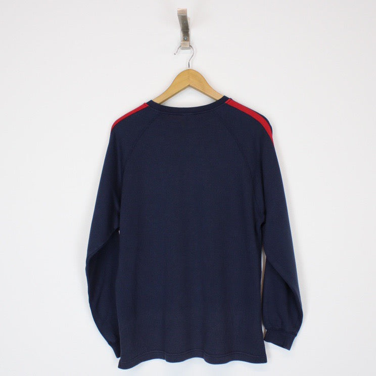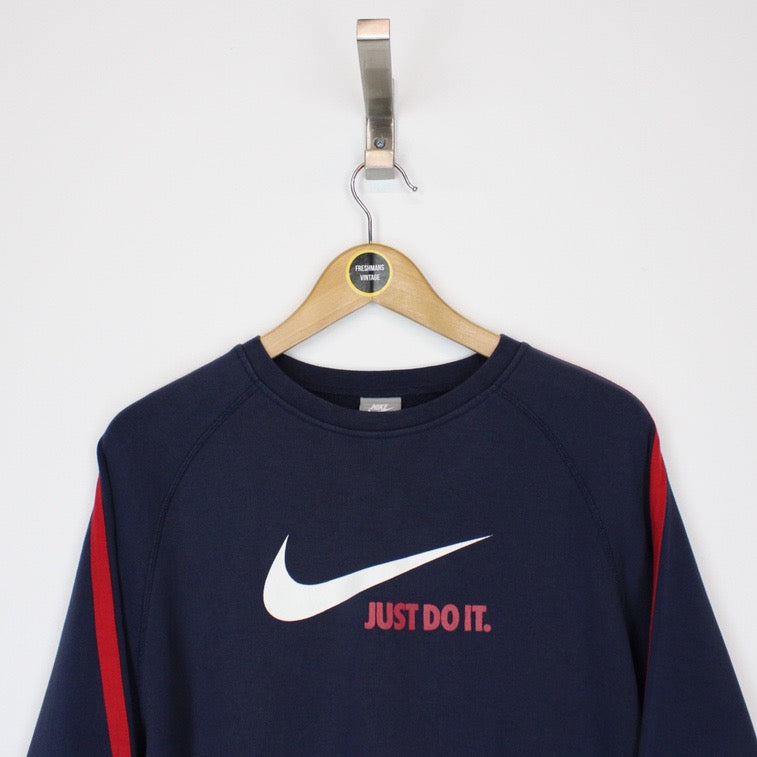 Vintage 00's Nike Navy Blue Central Swoosh Crew Neck Sweatshirt Jumper Size on label: Large Our recommended size: Small Pit to pit (inches): 20 Length (inches): 27 All products listed are vintage unless stated otherwise in the description. These items are pre-loved and pre-worn, resulting in small signs of wear and sometimes minor flaws. We think this adds to their unique authenticity, but if an item has any bigger flaws these will be stated. Please contact us if you have any further questions!