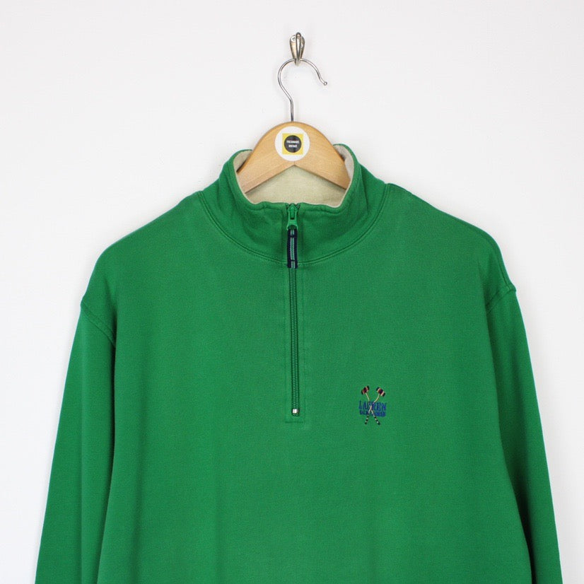 Vintage 00's Polo Ralph Lauren Green 1/4 Zip Pullover Sweatshirt Jumper Size on label: Medium Our recommended size: Medium Pit to pit (inches): 23.5 Length (inches): 28.5 All products listed are vintage unless stated otherwise in the description. These items are pre-loved and pre-worn, resulting in small signs of wear and minor fading. We think this adds to their unique authenticity, but if an item has any major flaws these will be stated below. - The sweatshirt does have a mark to the front, this is reflected in the price Please contact us if you have any further questions!