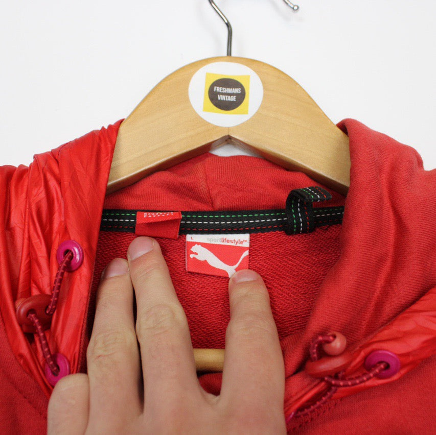 Vintage 90's Puma Ferrari Red Zip Up Spellout Hoodie Jacket Size on label: Large Our recommended size: Medium/Large Pit to pit (inches): 21.5 Length (inches): 27 All products listed are vintage unless stated otherwise in the description. These items are pre-loved and pre-worn, resulting in small signs of wear and fading. We think this adds to their unique authenticity, but if an item has any major flaws these will be stated. Please contact us if you have any further questions!