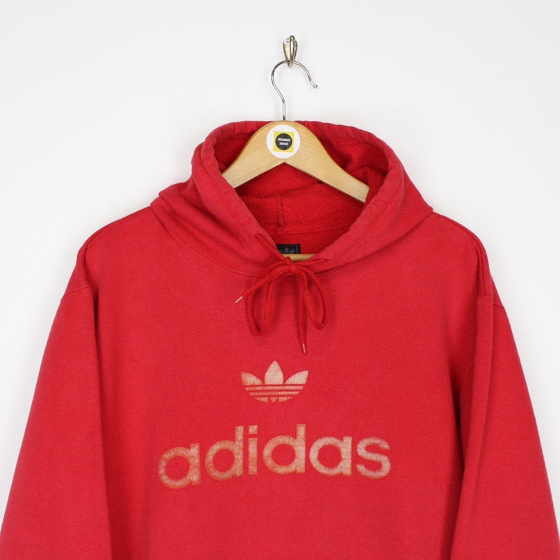 Vintage 80's Adidas Red Pullover Spellout Hoodie Jumper Size on label: Small Our recommended size: Small Pit to pit (inches): 22.5 Length (inches): 25 All products listed are vintage unless stated otherwise in the description. These items are pre-loved and pre-worn, resulting in small signs of wear and minor fading. We think this adds to their unique authenticity, but if an item has any major flaws these will be stated below. Please contact us if you have any further questions!