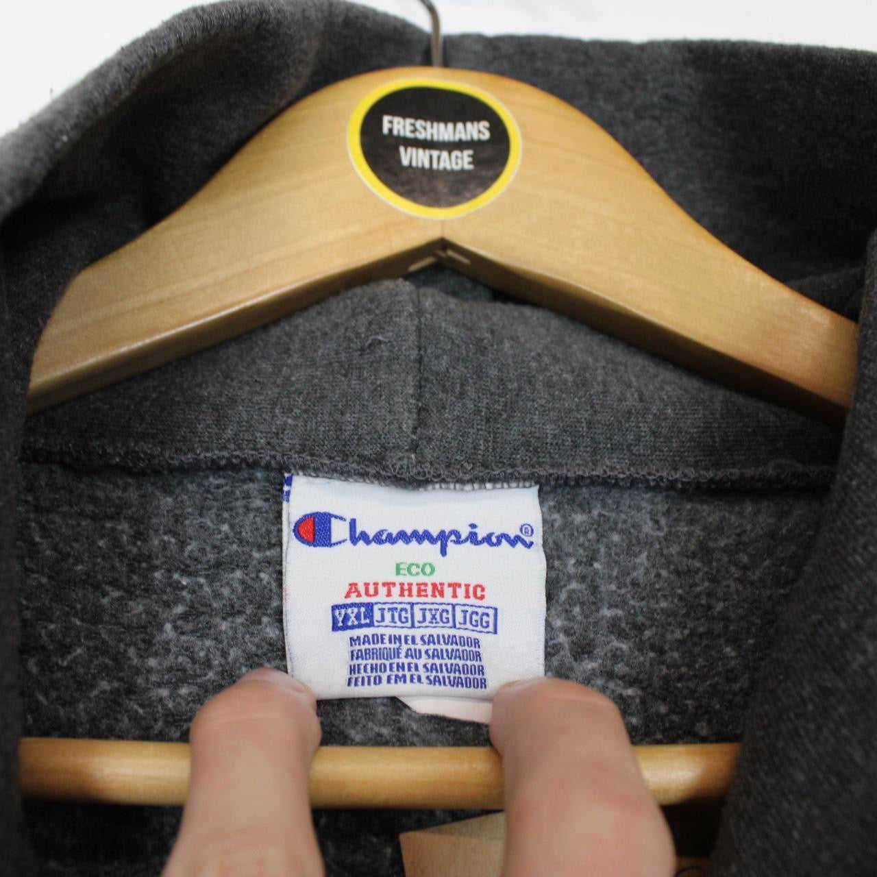 Vintage 90s Champion Grey and Orange Spellout Hoodie Jumper