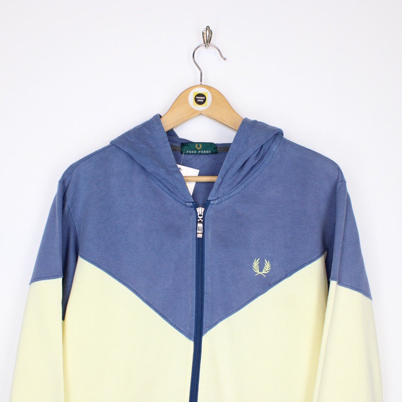 Vintage 90's Fred Perry Pale Yellow and Blue Zip Up Hoodie Jumper Size on label: N/A Our recommended size: Small Pit to pit (inches): 21 Length (inches): 27 All products listed are vintage unless stated otherwise in the description. These items are pre-loved and pre-worn, resulting in small signs of wear and minor fading. We think this adds to their unique authenticity, but if an item has any major flaws these will be stated below. Please contact us if you have any further questions!