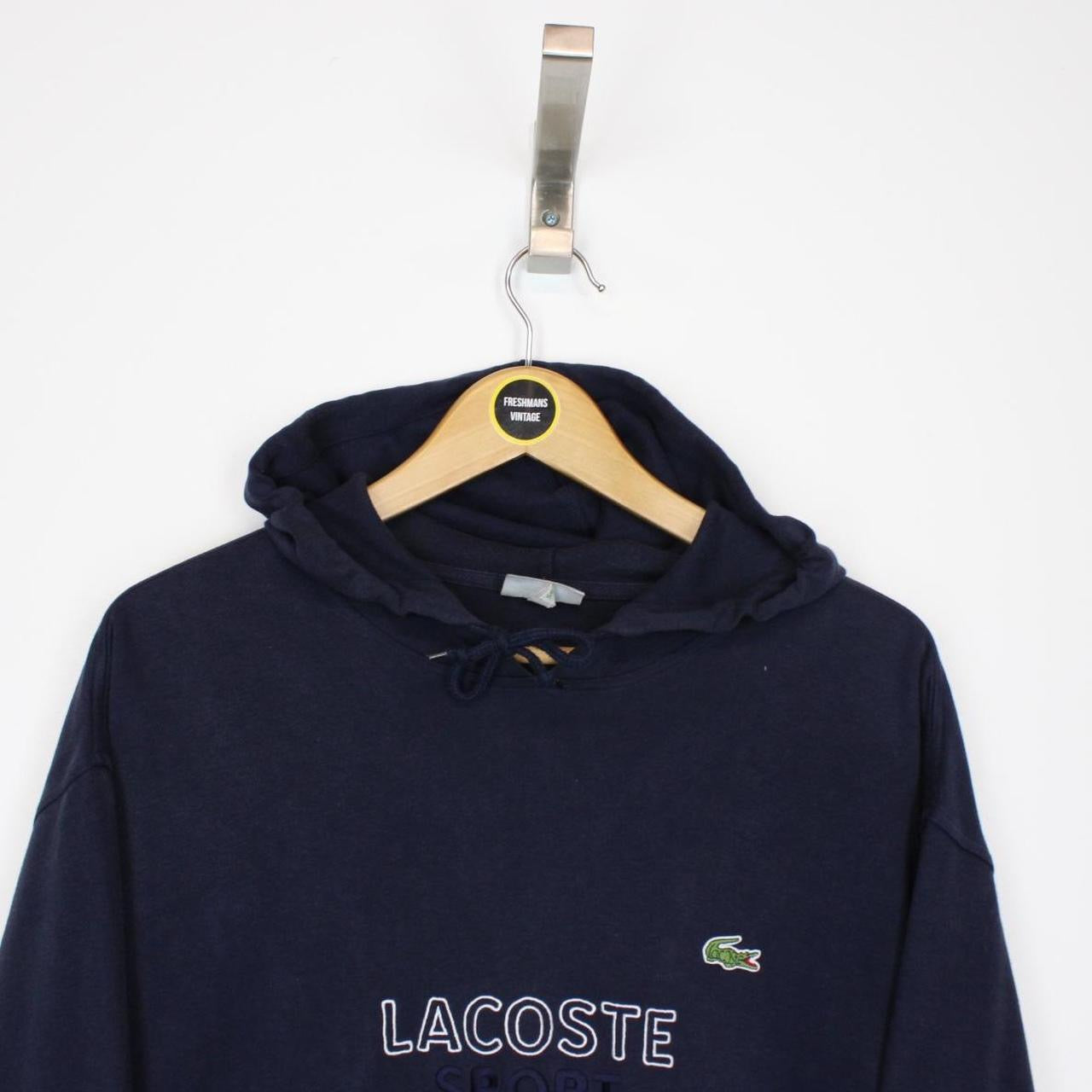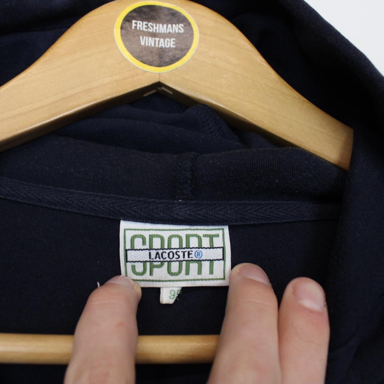 Vintage 90s Lacoste Sport Navy Blue Spellout Hoodie Jumper
