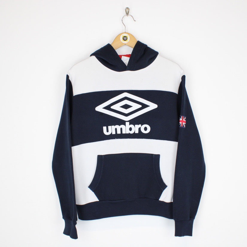 Vintage 00's Umbro Navy Blue and White Spellout Pullover Hoodie Jumper Size on label: Women's Small Our recommended size: Women's Small Pit to pit (inches): 22 Length (inches): 24 All products listed are vintage unless stated otherwise in the description. These items are pre-loved and pre-worn, resulting in small signs of wear and sometimes minor flaws. We think this adds to their unique authenticity, but if an item has any bigger flaws these will be stated. Please contact us if you have any further questions!