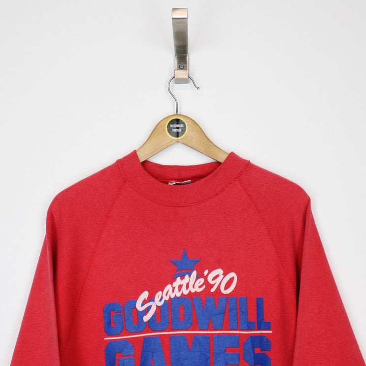 Vintage 1990 Seattle Goodwill Games USA Red Crew Neck Spellout Sweatshirt Jumper Size on label: Medium Our recommended size: Medium Pit to pit (inches): 19 Length (inches): 26.5 All products listed are vintage unless stated otherwise in the description. These items are pre-loved and pre-worn, resulting in small signs of wear and minor fading. We think this adds to their unique authenticity Please contact us if you have any further questions!