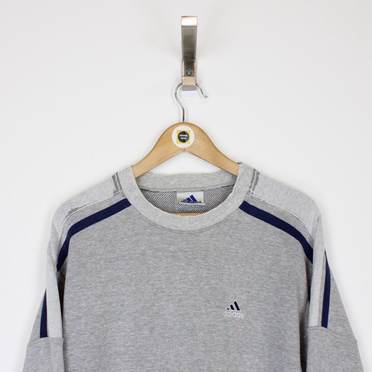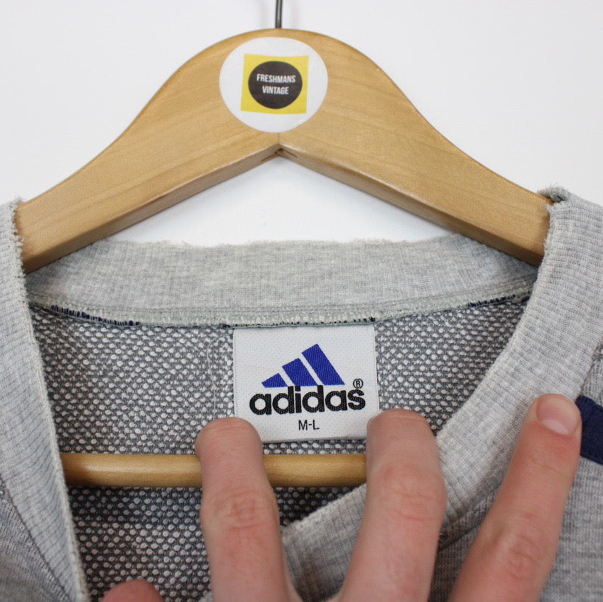Vintage 90's Adidas Grey Crew Neck Spellout Sweatshirt Jumper Size on label: M/L Our recommended size: Medium Pit to pit (inches): 21 Length (inches): 28 All products listed are vintage unless stated otherwise in the description. These items are pre-loved and pre-worn, resulting in small signs of wear and fading. We think this adds to their unique authenticity, but if an item has any major flaws these will be stated. - The sweatshirt has a faint mark to the front, this is reflected in the price Please contact us if you have any further questions!