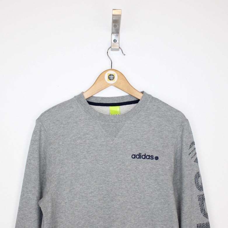 Vintage 00's Adidas Grey and Black Crew Neck Spellout Sweatshirt Jumper Size on label: N/A Our recommended size: Medium Pit to pit (inches): 19 Length (inches): 27 All products listed are vintage unless stated otherwise in the description. These items are pre-loved and pre-worn, resulting in small signs of wear and minor fading. We think this adds to their unique authenticity, but if an item has any major flaws these will be stated below. Please contact us if you have any further questions!