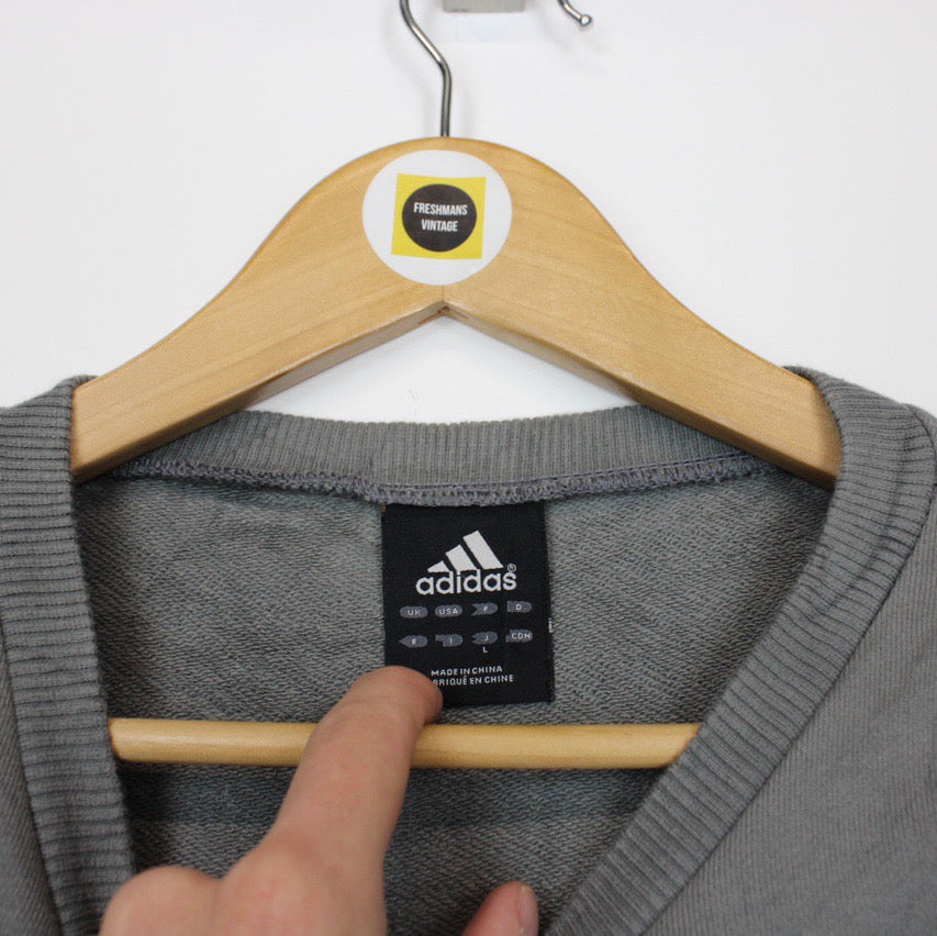 Vintage 00's Adidas Grey Spellout Crew Neck Sweatshirt Jumper Size on label: N/A Our recommended size: Small Pit to pit (inches): 21.5 Length (inches): 25.5 All products listed are vintage unless stated otherwise in the description. These items are pre-loved and pre-worn, resulting in small signs of wear and fading. We think this adds to their unique authenticity, but if an item has any major flaws these will be stated. Please contact us if you have any further questions!