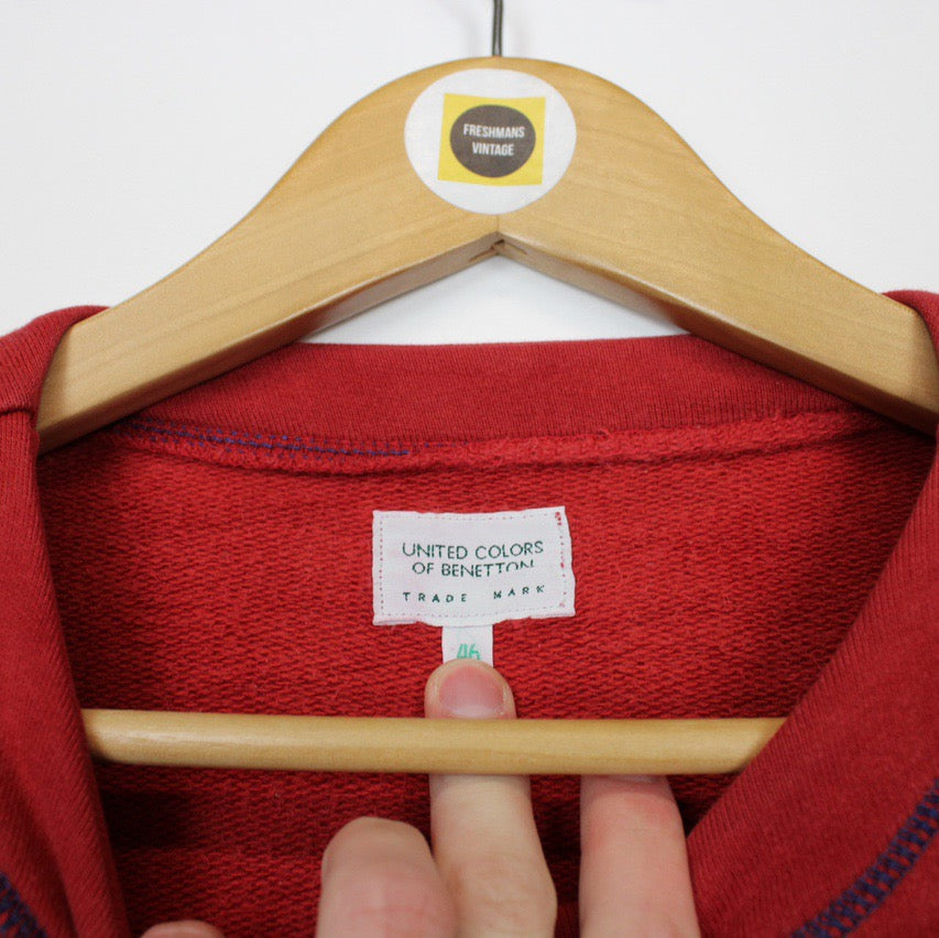 Vintage 90's Benetton Red Crew Neck Spellout Sweatshirt Jumper Size on label: 46 Our recommended size: Women's Medium Pit to pit (inches): 23 Length (inches): 24 All products listed are vintage unless stated otherwise in the description. These items are pre-loved and pre-worn, resulting in small signs of wear and minor fading. We think this adds to their unique authenticity, but if an item has any major flaws these will be stated below. Please contact us if you have any further questions!