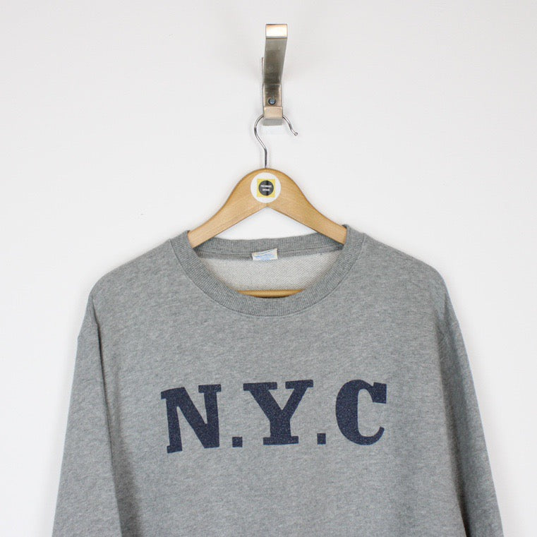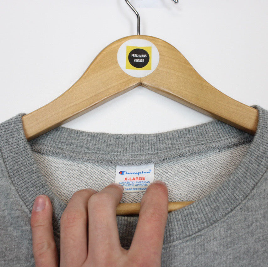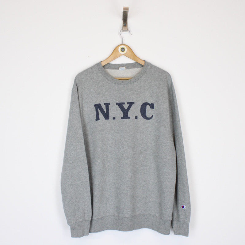 Vintage 90's Champion New York City USA Grey Spellout Crew Neck Sweatshirt Jumper Size on label: Large Our recommended size: Large Pit to pit (inches): 24 Length (inches): 28 All products listed are vintage unless stated otherwise in the description. These items are pre-loved and pre-worn, resulting in small signs of wear and minor fading. We think this adds to their unique authenticity, but if an item has any major flaws these will be stated below. - The sweatshirt does a faint mark to the front, this is reflected in the price Please contact us if you have any further questions!