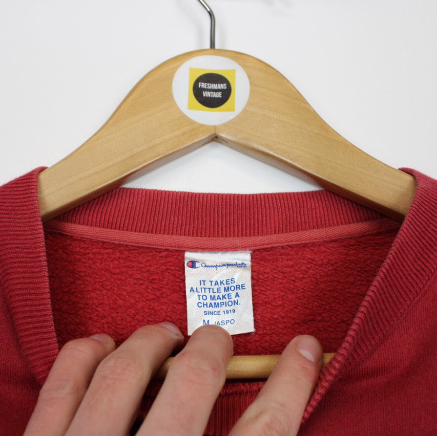 Vintage 00's Champion Red Crew Neck Sweatshirt Jumper Size on label: Women's Medium Our recommended size: Women's Medium Pit to pit (inches): 22.5 Length (inches): 24 All products listed are vintage unless stated otherwise in the description. These items are pre-loved and pre-worn, resulting in small signs of wear and sometimes minor flaws. We think this adds to their unique authenticity, but if an item has any bigger flaws these will be stated. - The sweatshirt has a mark to the front, this is reflected in the price Please contact us if you have any further questions!