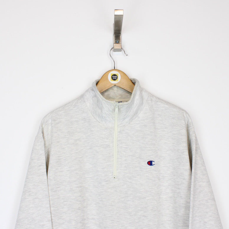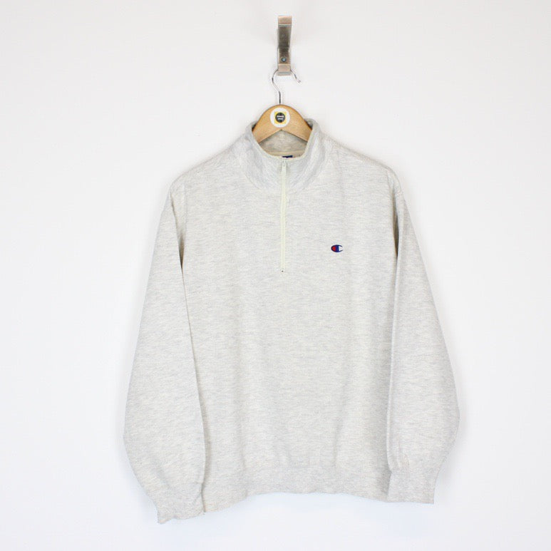 Vintage 90's Champion Grey Pullover 1/4 Zip Sweatshirt Jumper Size on label: Women's Medium Our recommended size: Women's Medium Pit to pit (inches): 23 Length (inches): 24 All products listed are vintage unless stated otherwise in the description. These items are pre-loved and pre-worn, resulting in small signs of wear and sometimes minor flaws. We think this adds to their unique authenticity, but if an item has any bigger flaws these will be stated. Please contact us if you have any further questions!