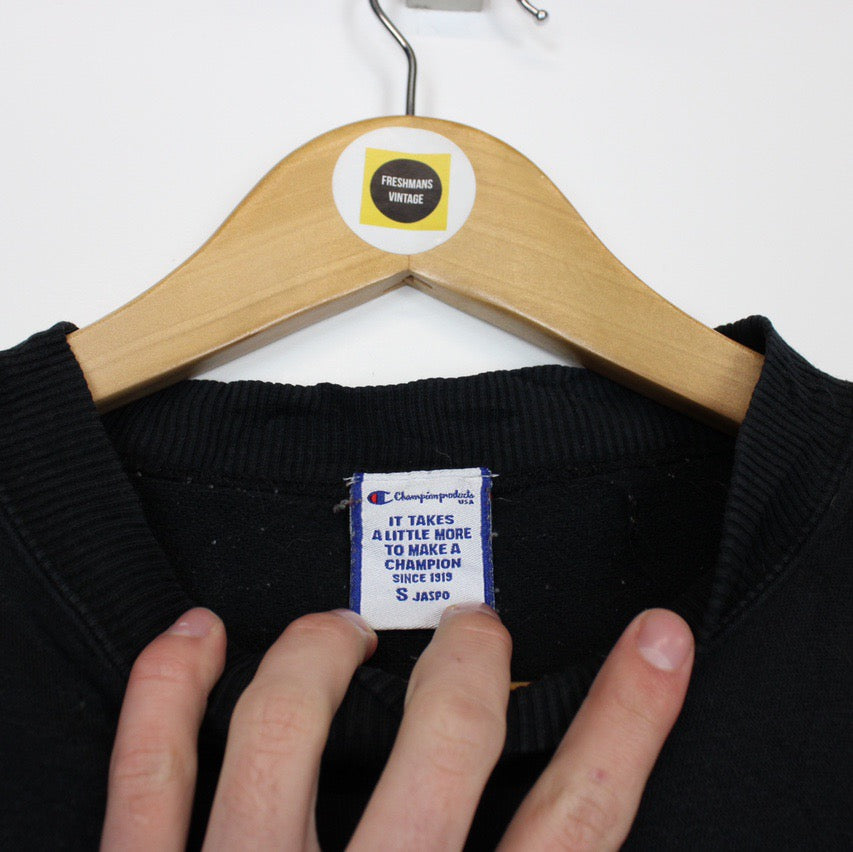 Vintage 90's Champion Black and White Crew Neck Spellout Sweatshirt Jumper Size on label: Women's Small Our recommended size: Women's Small Pit to pit (inches): 20 Length (inches): 23.5 All products listed are vintage unless stated otherwise in the description. These items are pre-loved and pre-worn, resulting in small signs of wear and sometimes minor flaws. We think this adds to their unique authenticity, but if an item has any bigger flaws these will be stated. - The sweatshirt has some discolouration to the front, this is reflected in the price Please contact us if you have any further questions!