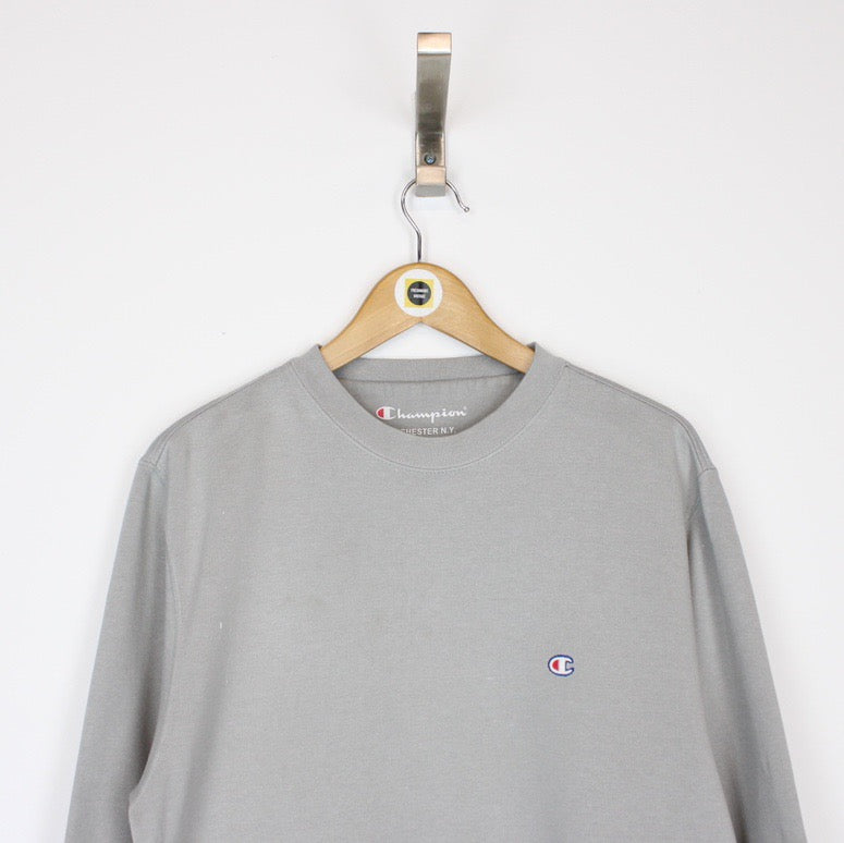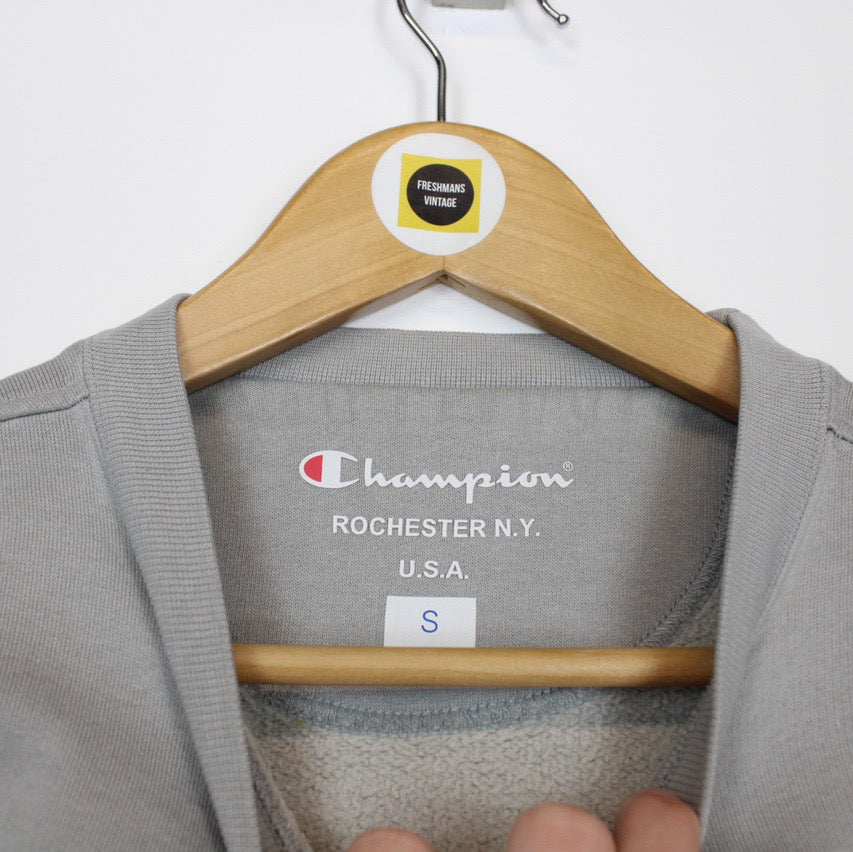 Vintage 90's Champion Grey Crew Neck Sweatshirt Jumper Size on label: Small Our recommended size: Small Pit to pit (inches): 20 Length (inches): 26 All products listed are vintage unless stated otherwise in the description. These items are pre-loved and pre-worn, resulting in small signs of wear and minor fading. We think this adds to their unique authenticity, but if an item has any major flaws these will be stated below. - The sweatshirt has some paint marks throughout but mainly to the sleeves, this is reflected in the price Please contact us if you have any further questions!