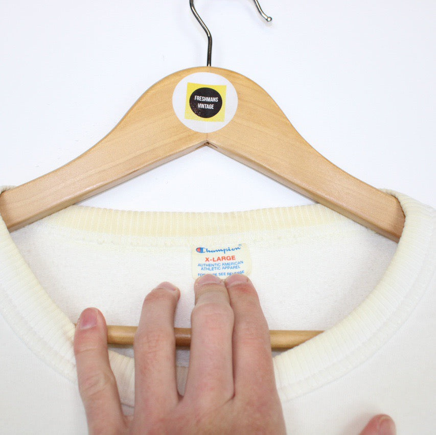 Vintage 90's Champion White and Navy Blue Montgomery USA Spellout Sweatshirt Jumper Size on label: XL Our recommended size: XL Pit to pit (inches): 24 Length (inches): 28 All products listed are vintage unless stated otherwise in the description. These items are pre-loved and pre-worn, resulting in small signs of wear and minor fading. We think this adds to their unique authenticity, but if an item has any major flaws these will be stated below. - The sweatshirt does have some patches of discolouration throughout along with some to the collar too Please contact us if you have any further questions!