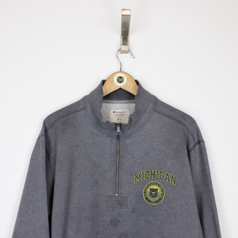 Vintage 00's Champion Michigan USA Grey Pullover 1/4 Zip Spellout Sweatshirt Jumper Size on label: XL Our recommended size: XL Pit to pit (inches): 26 Length (inches): 30 All products listed are vintage unless stated otherwise in the description. These items are pre-loved and pre-worn, resulting in small signs of wear and minor fading. We think this adds to their unique authenticity, but if an item has any major flaws these will be stated below. - The sweatshirt does have a few marks to the front, this is reflected in the price Please contact us if you have any further questions!