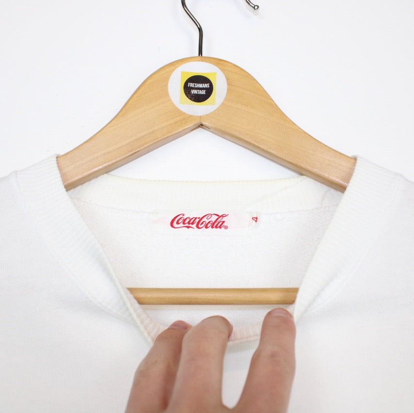 Vintage 90's Coca Cola White Crew Neck Spellout Sweatshirt Jumper Size on label: 4 Our recommended size: Medium Pit to pit (inches): 23.5 Length (inches): 26 All products listed are vintage unless stated otherwise in the description. These items are pre-loved and pre-worn, resulting in small signs of wear and minor fading. We think this adds to their unique authenticity, but if an item has any major flaws these will be stated below. Please contact us if you have any further questions!