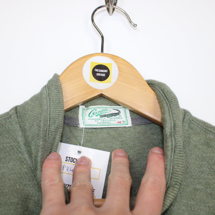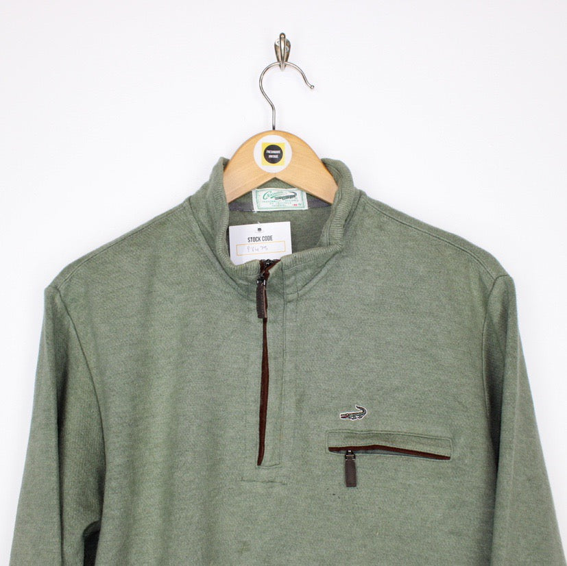 Vintage 90's Crocodile Green Pullover 1/4 Zip Sweatshirt Jumper Size on label: Medium Our recommended size: Medium Pit to pit (inches): 22 Length (inches): 27 All products listed are vintage unless stated otherwise in the description. These items are pre-loved and pre-worn, resulting in small signs of wear and minor fading. We think this adds to their unique authenticity, but if an item has any major flaws these will be stated below - The sweatshirt does have a couple of faint marks to the front Please contact us if you have any further questions!